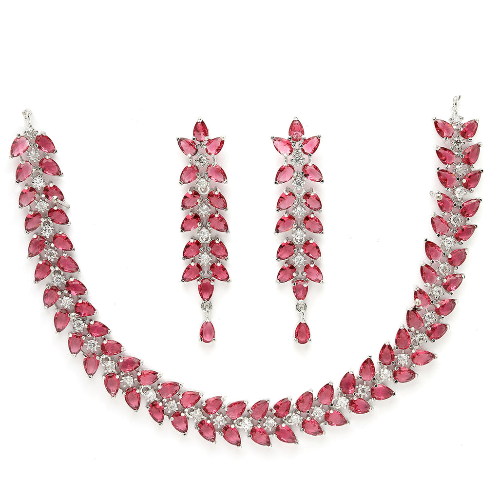 Elegant Royal Design: This exquisite rhodium-plated necklace set is a testament to timeless elegance and contemporary design. Crafted with precision.