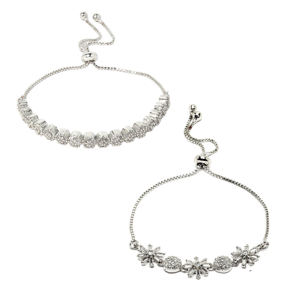 Elegant Design: This adjustable bracelet combo features a sleek & beautiful studded charm design with American diamonds, creating a sophisticated and eye-catching look.