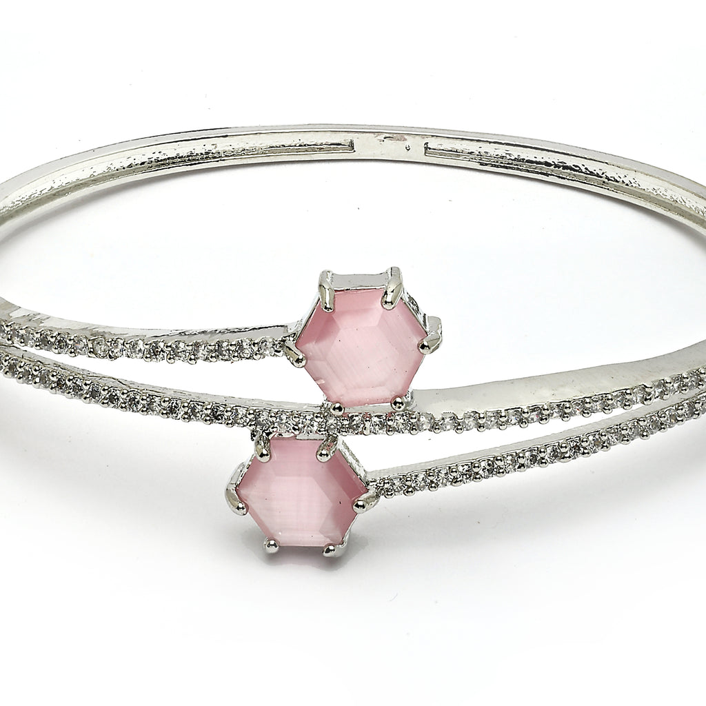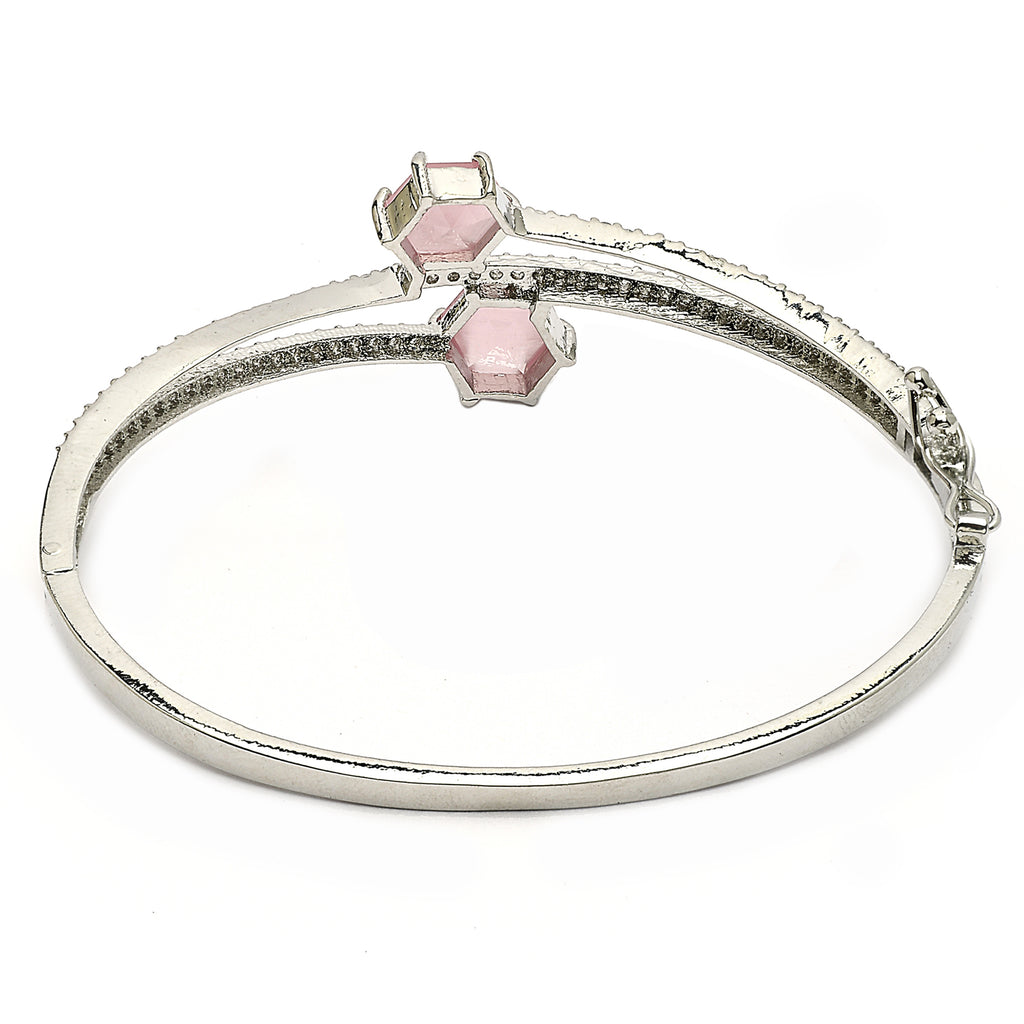 Elegant Design: This bangle bracelet features a sleek design with two pink American diamonds, creating a sophisticated and eye-catching look.