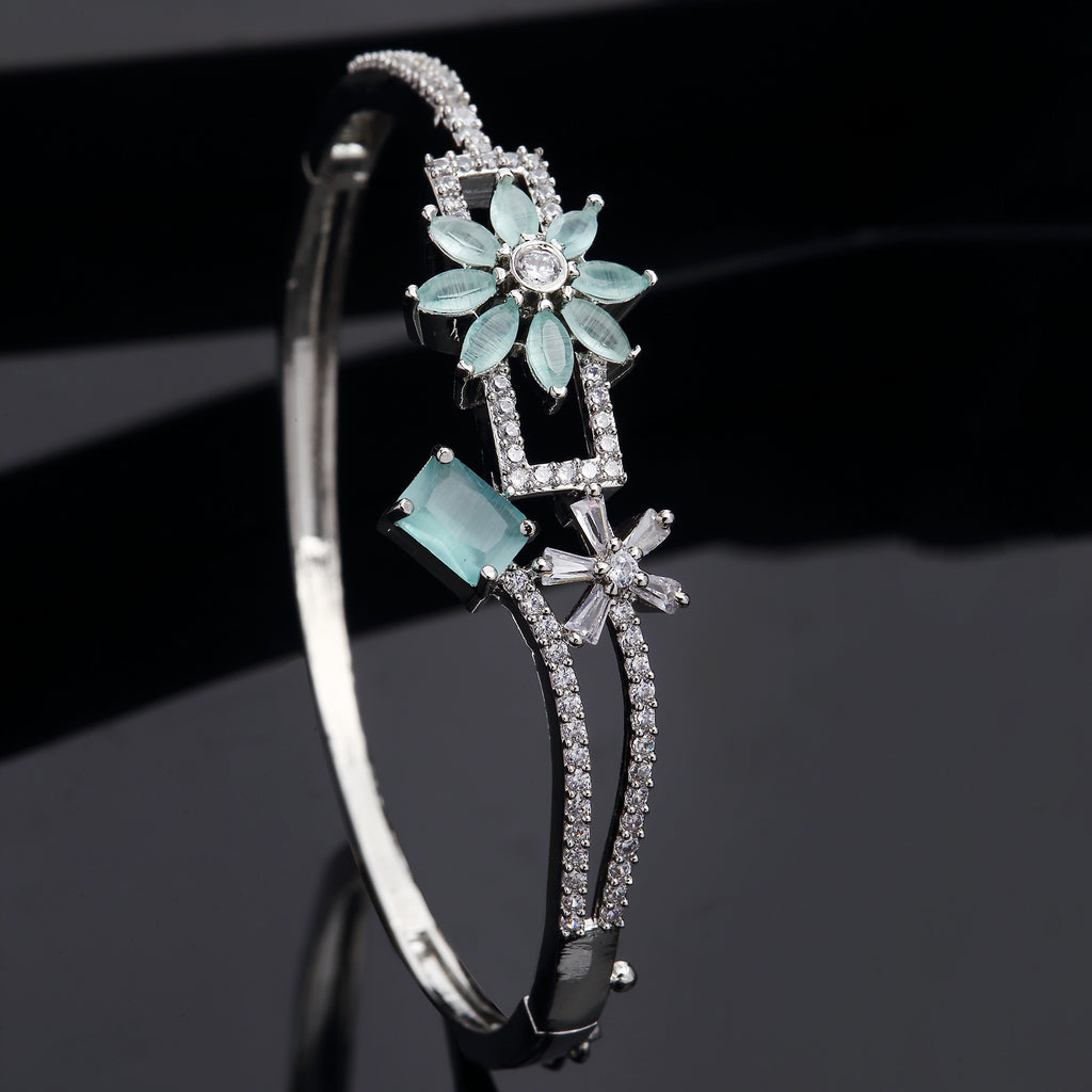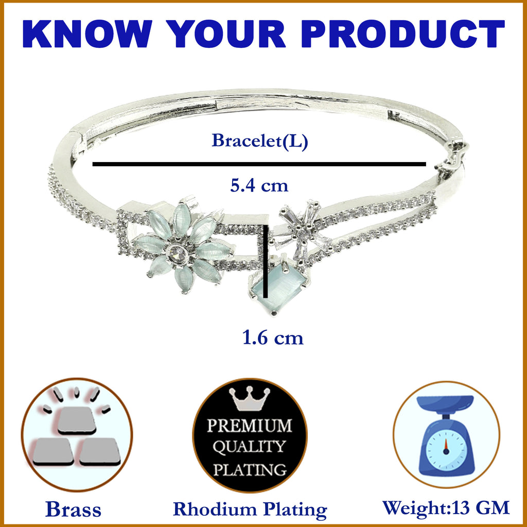 Elegant Design: This rhodium plated bracelet showcases Floral and square motifs adorned with sparkling stones.
