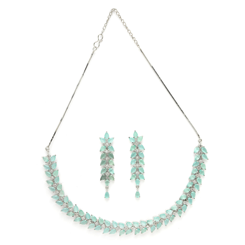 Elegant Royal Design: This exquisite rhodium-plated necklace set is a testament to timeless elegance and contemporary design. Crafted with precision.