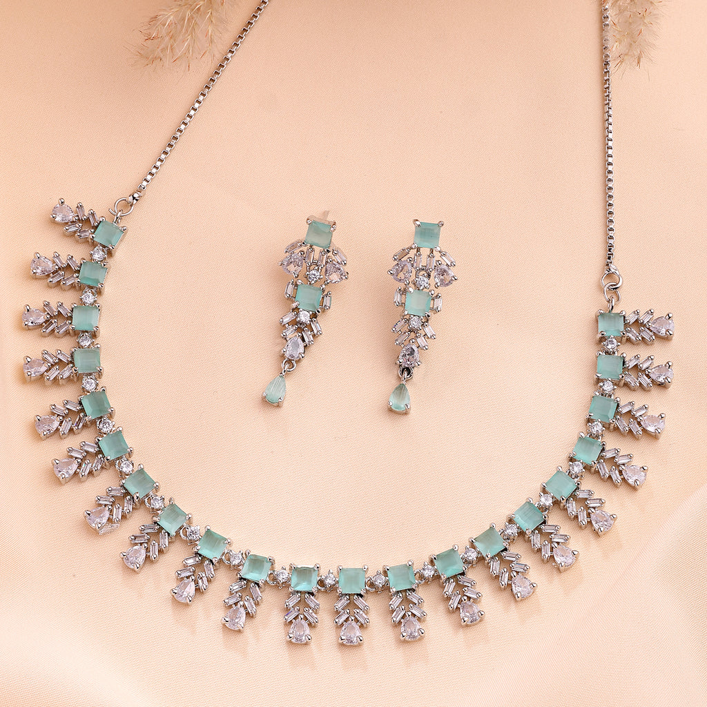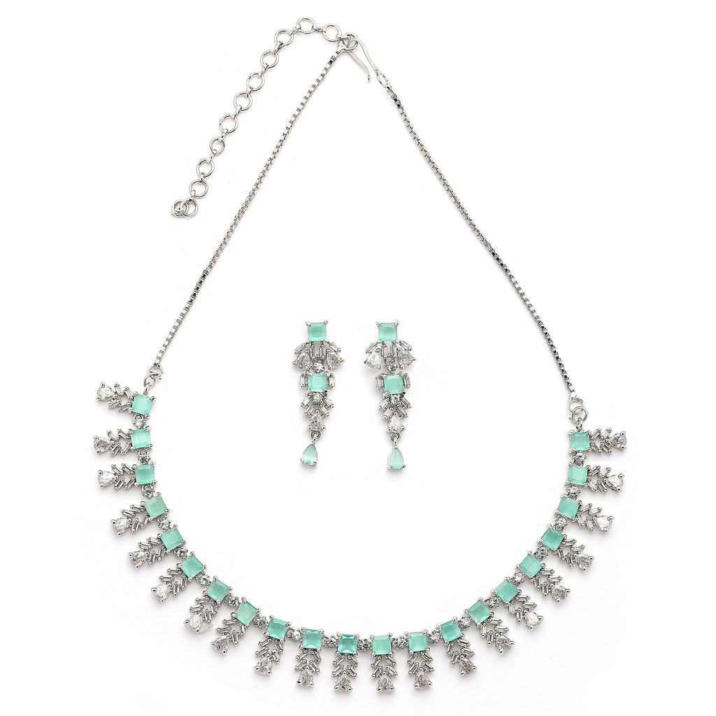 Elegant Design: This rhodium-plated necklace set boasts a sophisticated contemporary design, exuding timeless elegance.