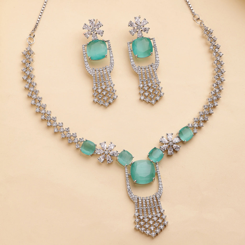 Elegant Design: This rhodium-plated necklace set boasts a sophisticated contemporary design, exuding timeless elegance.