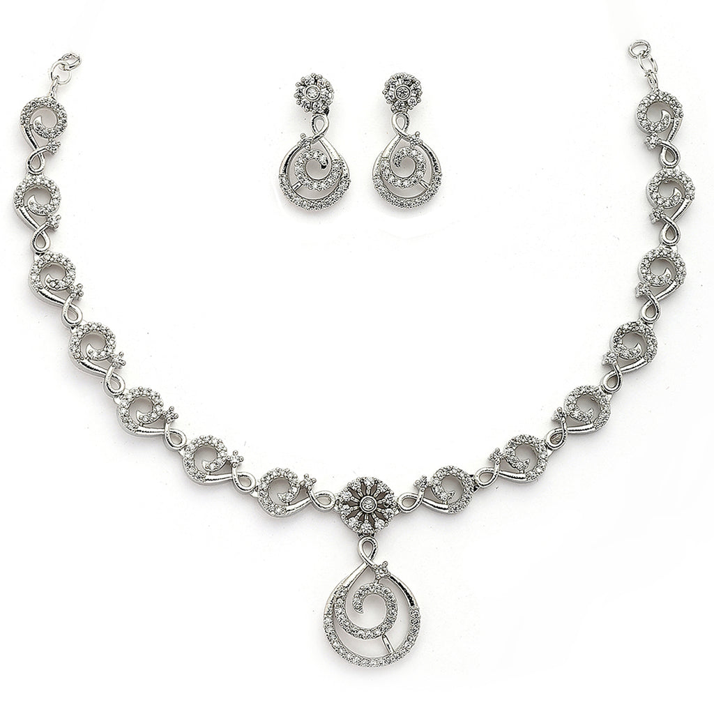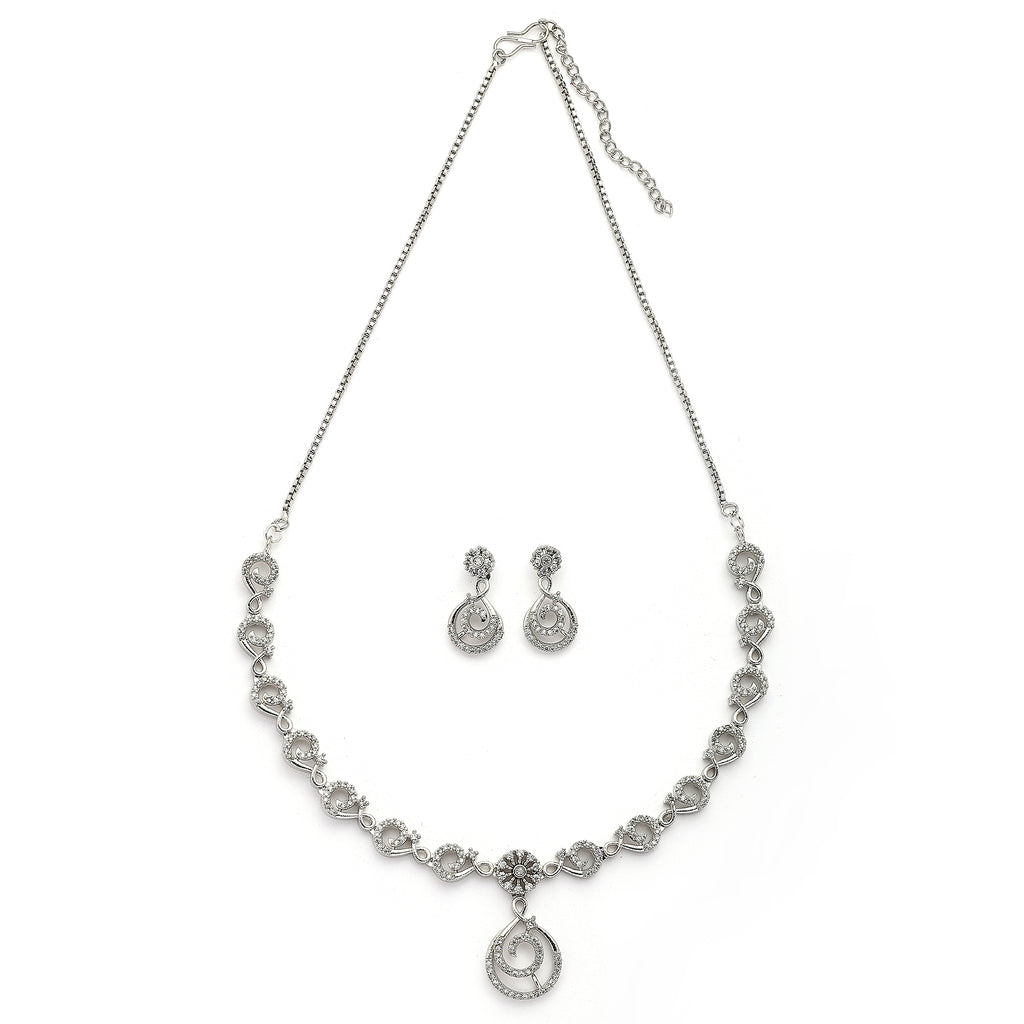 Elegant Design: This rhodium-plated necklace set boasts a sophisticated contemporary design, exuding timeless elegance.