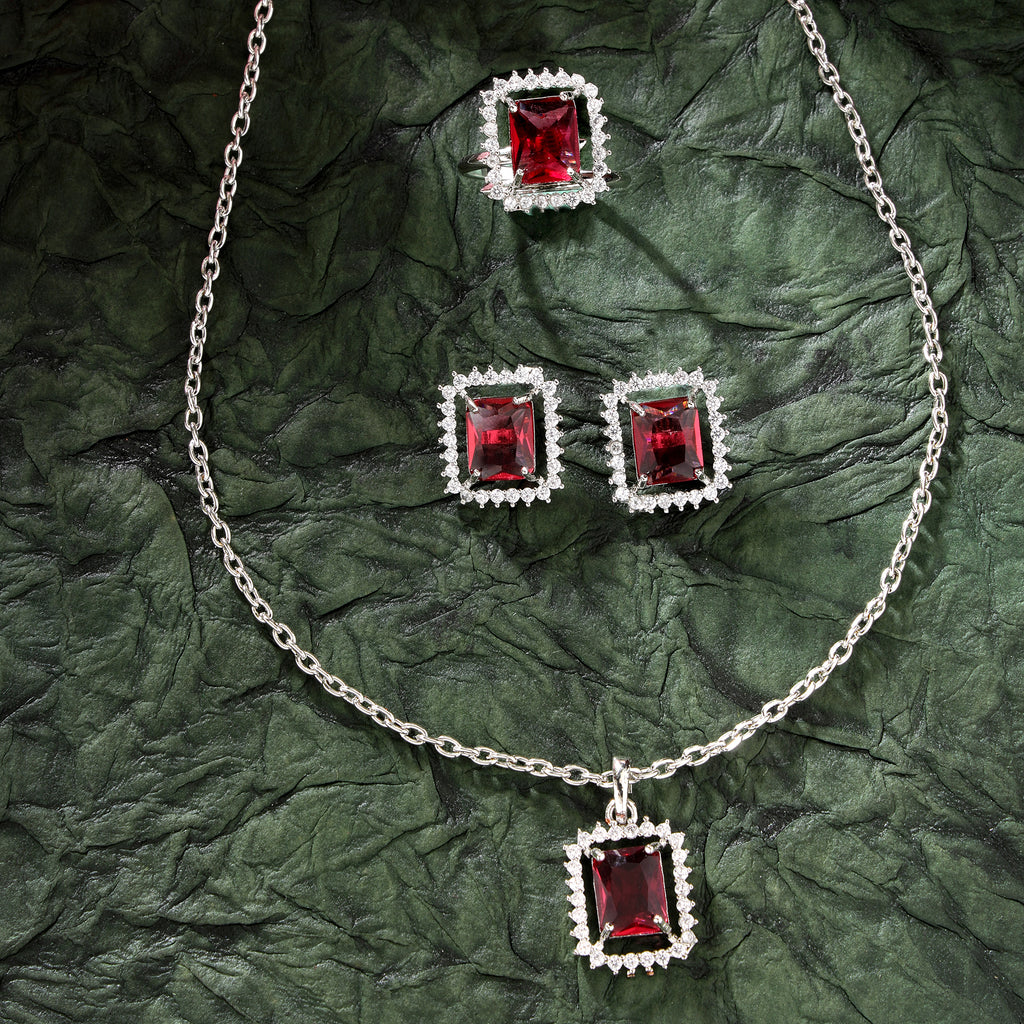 Elegant Square Design: This rhodium-plated is delicately designed, this pendant combo features intricate detailing and a timeless charm. Perfect for both formal occasions and casual wear.