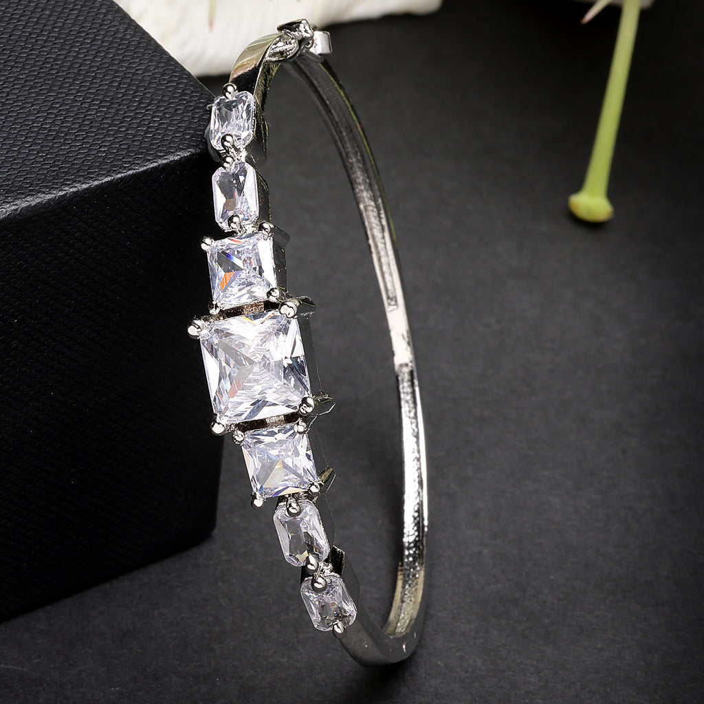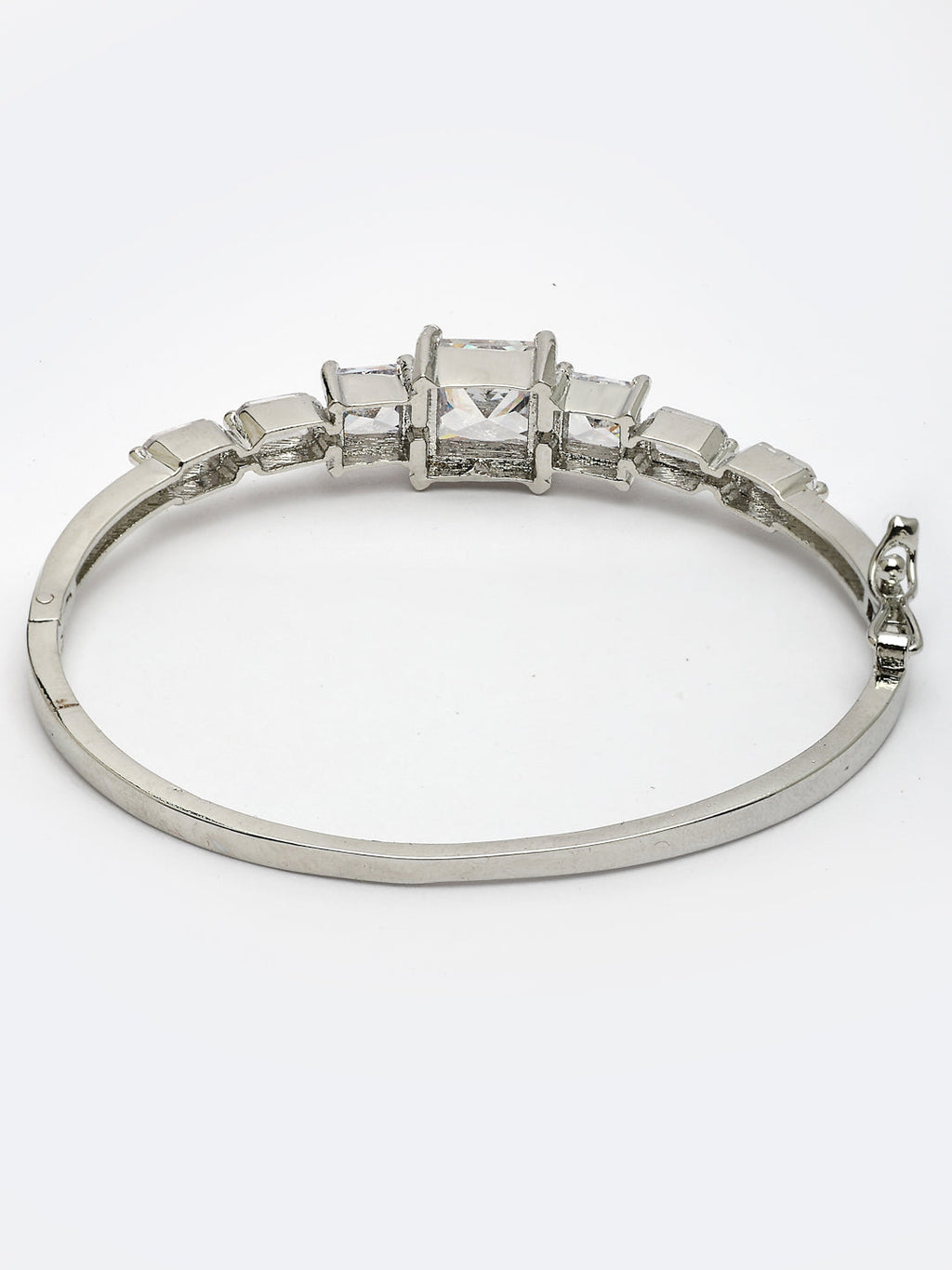 Sophisticated Square Design: This rhodium-plated bracelet features elegant square-shaped white American diamond studs, adding a modern and refined touch to your accessory collection.