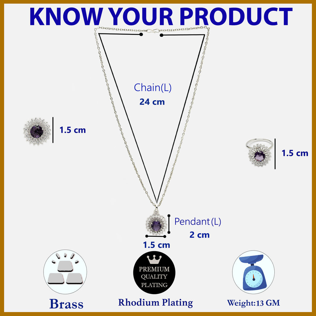 Elegant Design : This rhodium-plated with Pink gemstone at its core for a harmonized and stylish look. Surrounding the gemstone is a halo of shimmering white stones, adding a touch of brilliance and sophistication