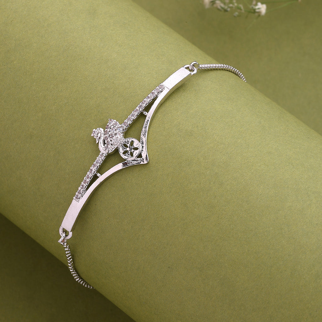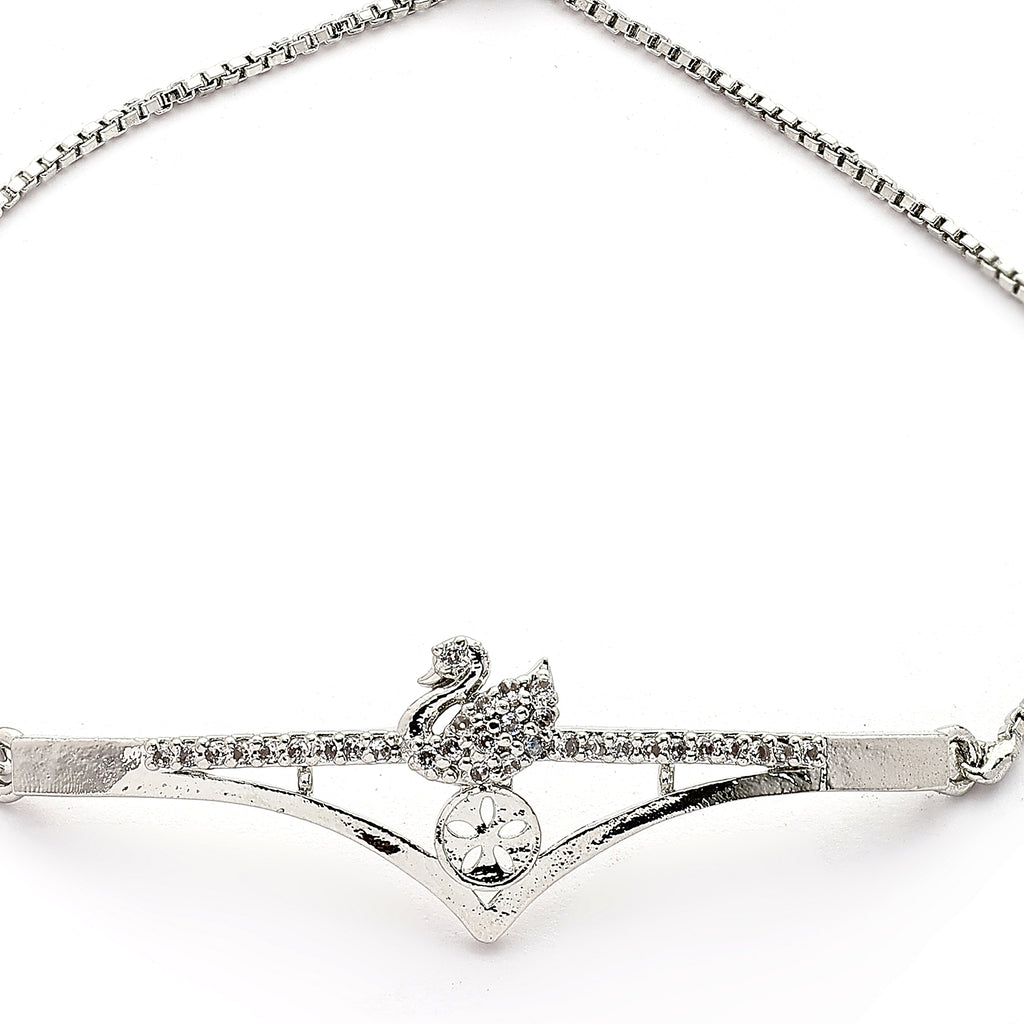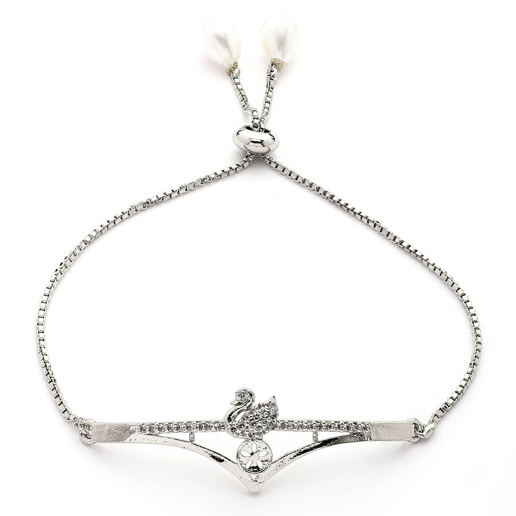 Elegant Design: This rhodium-plated wraparound bracelet showcases sparkling white Cubic Zirconia in a swan shape, adding a touch of sophistication to your look.