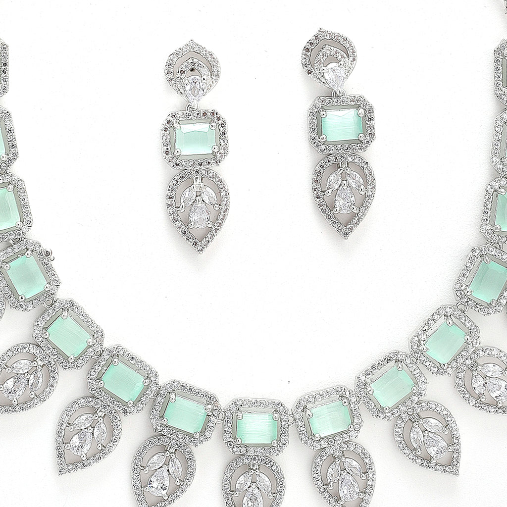 Elegant Design: This exquisite rhodium-plated necklace set is a testament to timeless elegance and contemporary design. Crafted with precision.