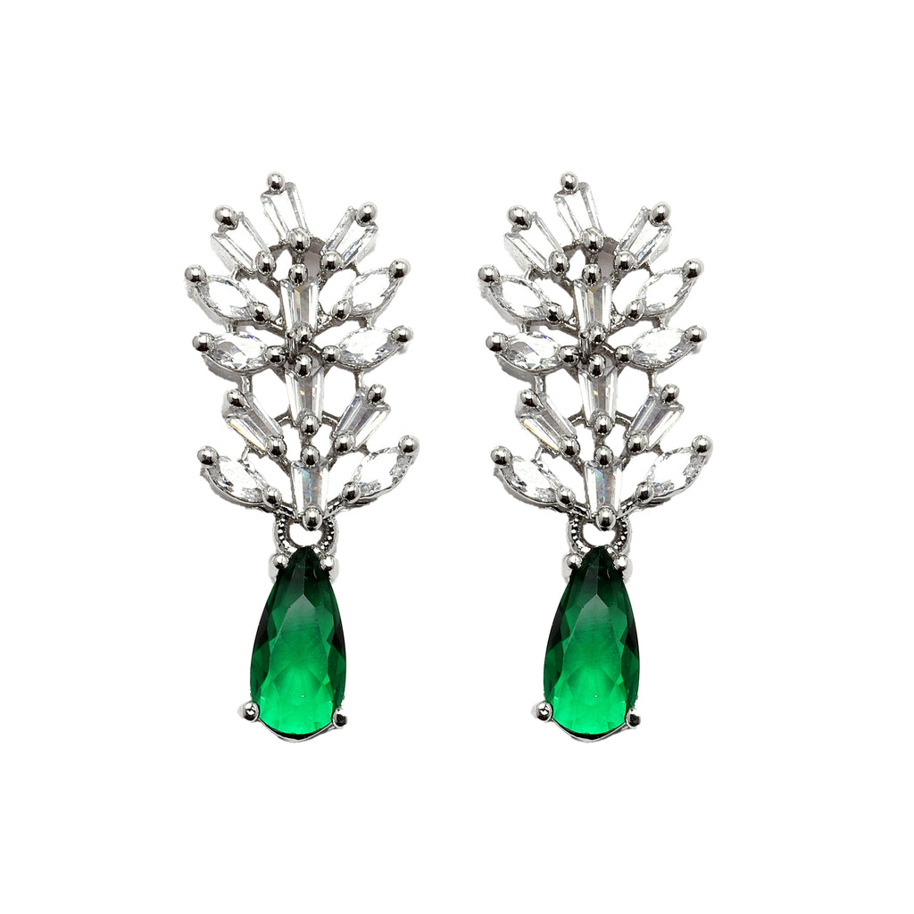 This jewellery set consists of a necklace and a pair of earrings. Rhodium-Plated green american diamond studded necklace, has secured with s-hook closure. A pair of matching drop earrings, each secured with a post and back closure.