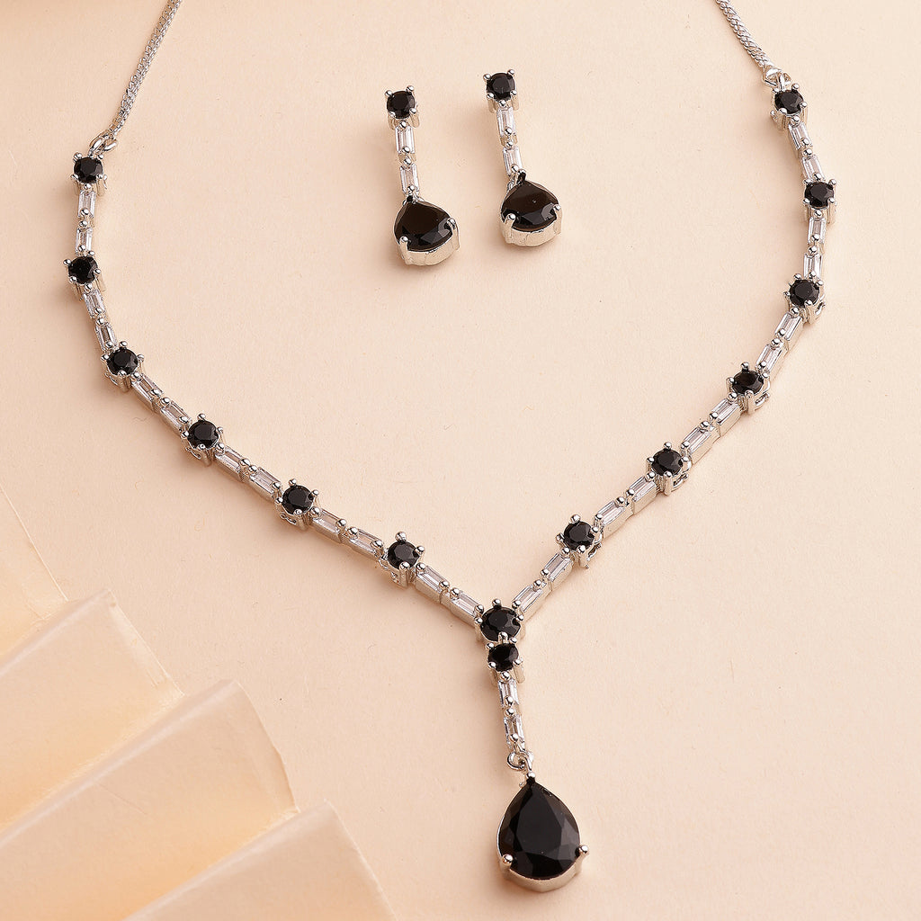 Elegant Design: This rhodium-plated necklace set boasts a sophisticated contemporary design, exuding timeless elegance.