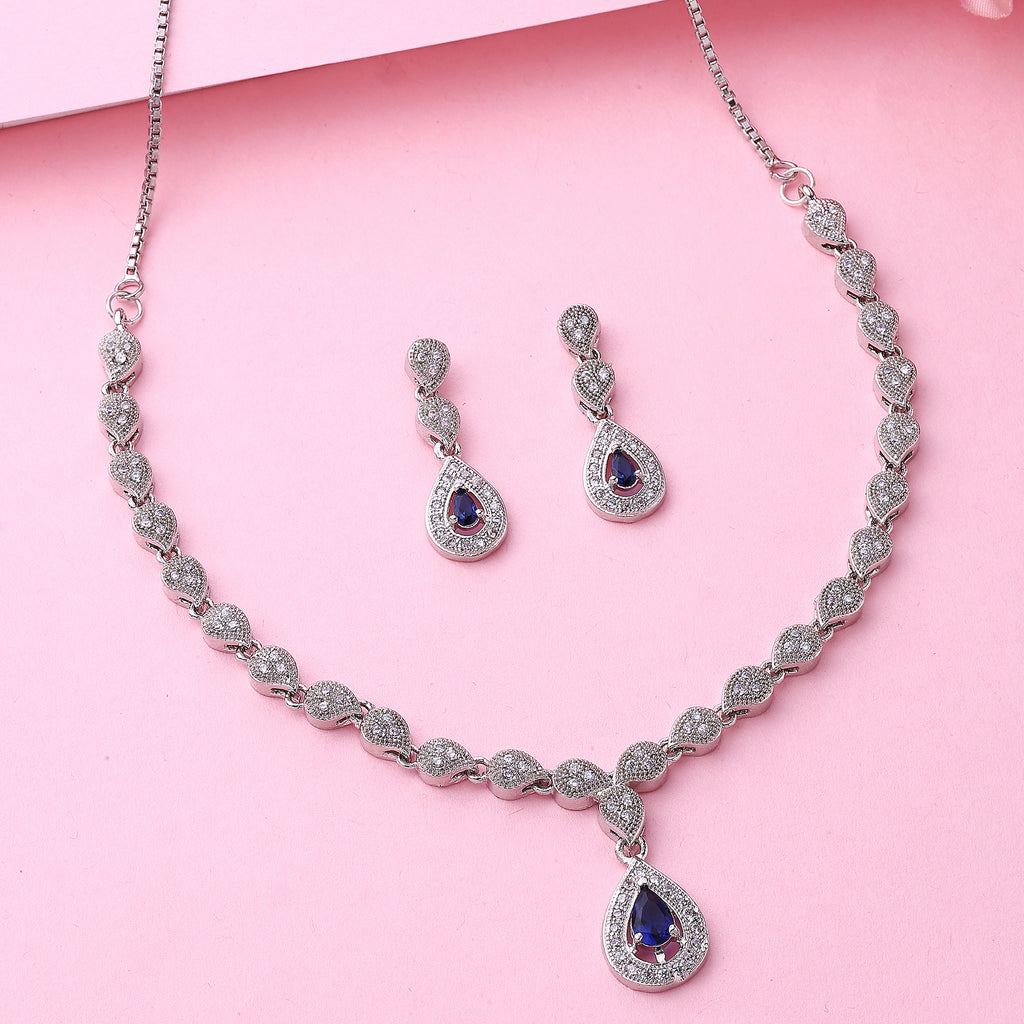 Elegant Design: This rhodium-plated necklace set boasts a sophisticated contemporary design, exuding timeless elegance.