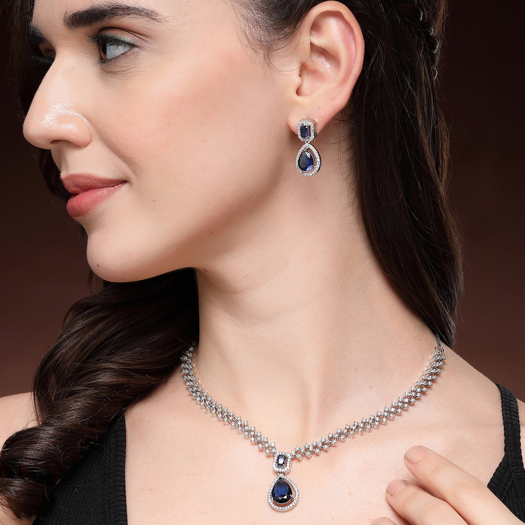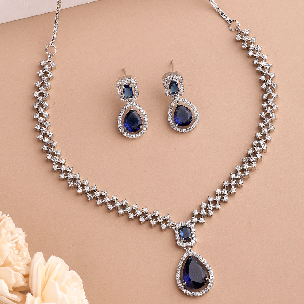 Elegant Design: This rhodium-plated necklace set boasts a sophisticated contemporary design, exuding timeless elegance.