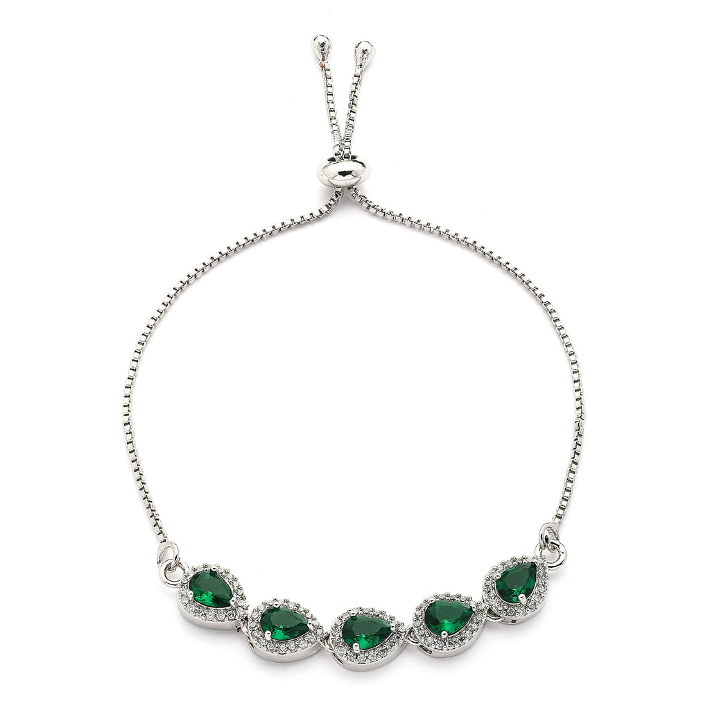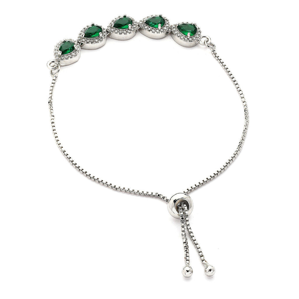 Elegant Drop Shape Design: This rhodium-plated wraparound bracelet showcases sparkling Green and white American diamonds in a teardrop shape, adding a touch of sophistication to your look.
