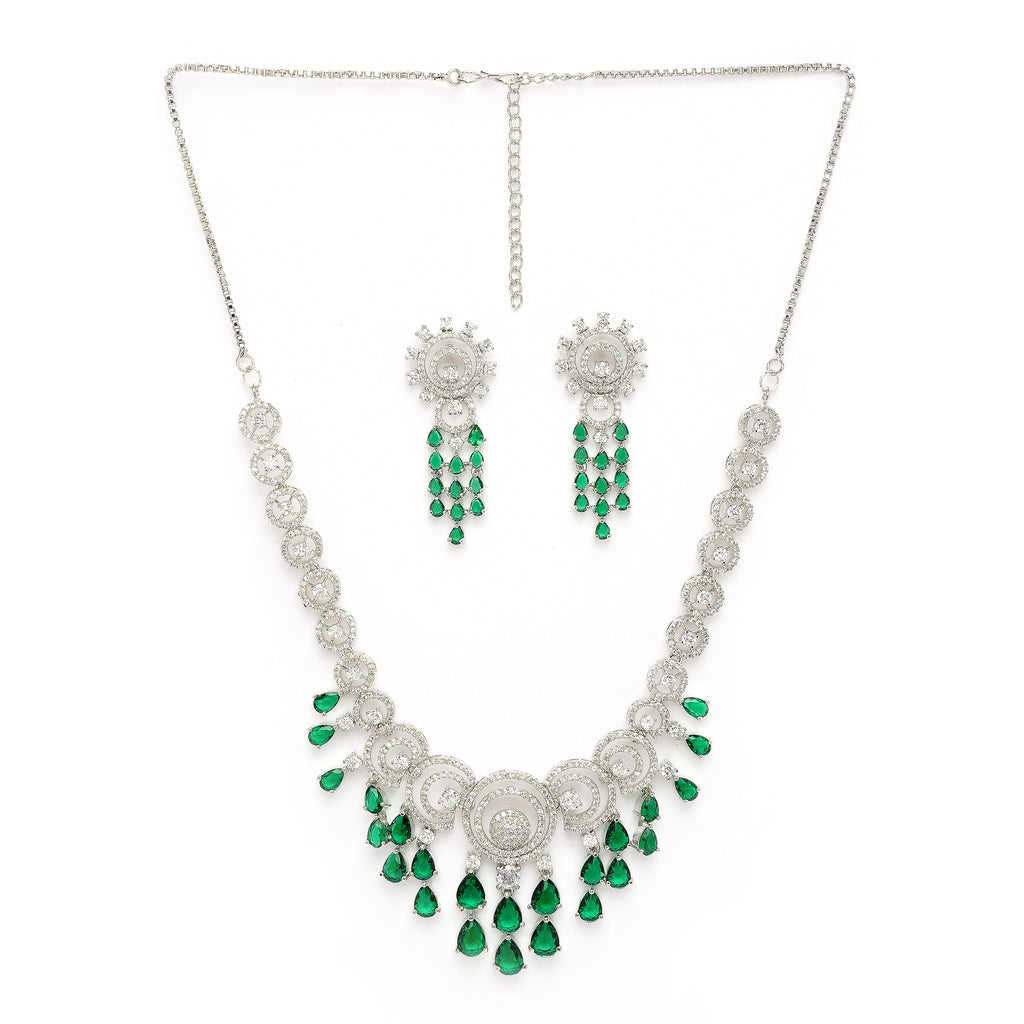 Elegant Design: This rhodium-plated necklace set boasts a sophisticated contemporary design, exuding timeless elegance.