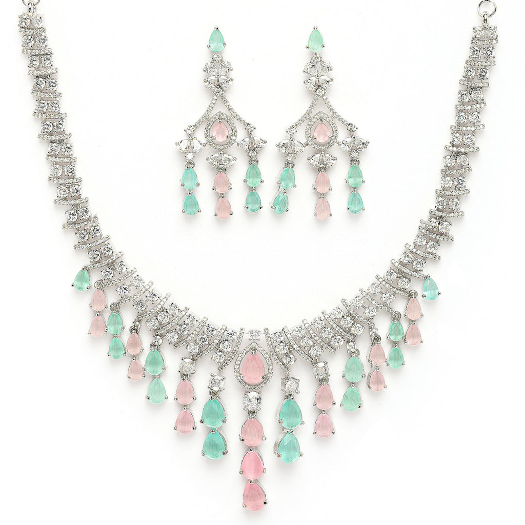 Elegant Design: This rhodium-plated necklace set boasts a sophisticated contemporary design, exuding timeless elegance.
