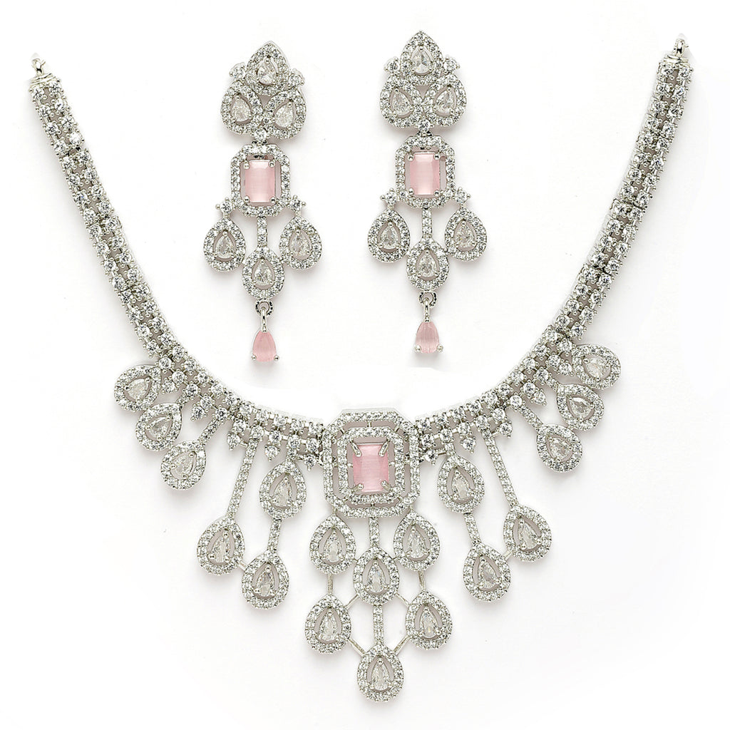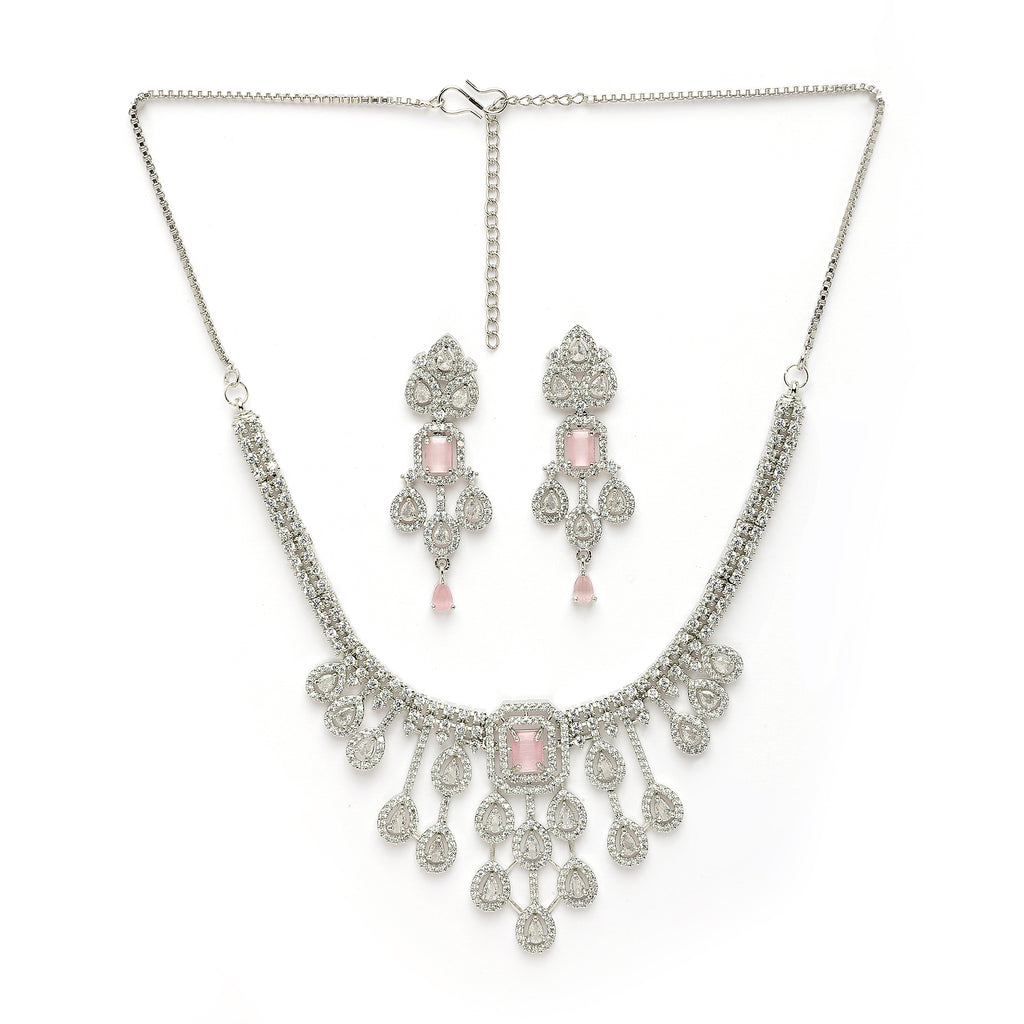 Elegant Design: This rhodium-plated necklace set boasts a sophisticated contemporary design, exuding timeless elegance.