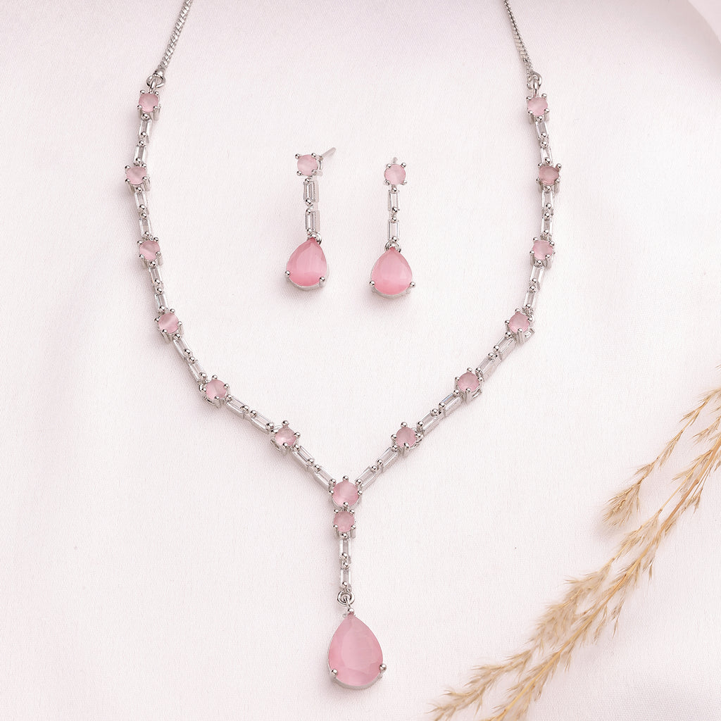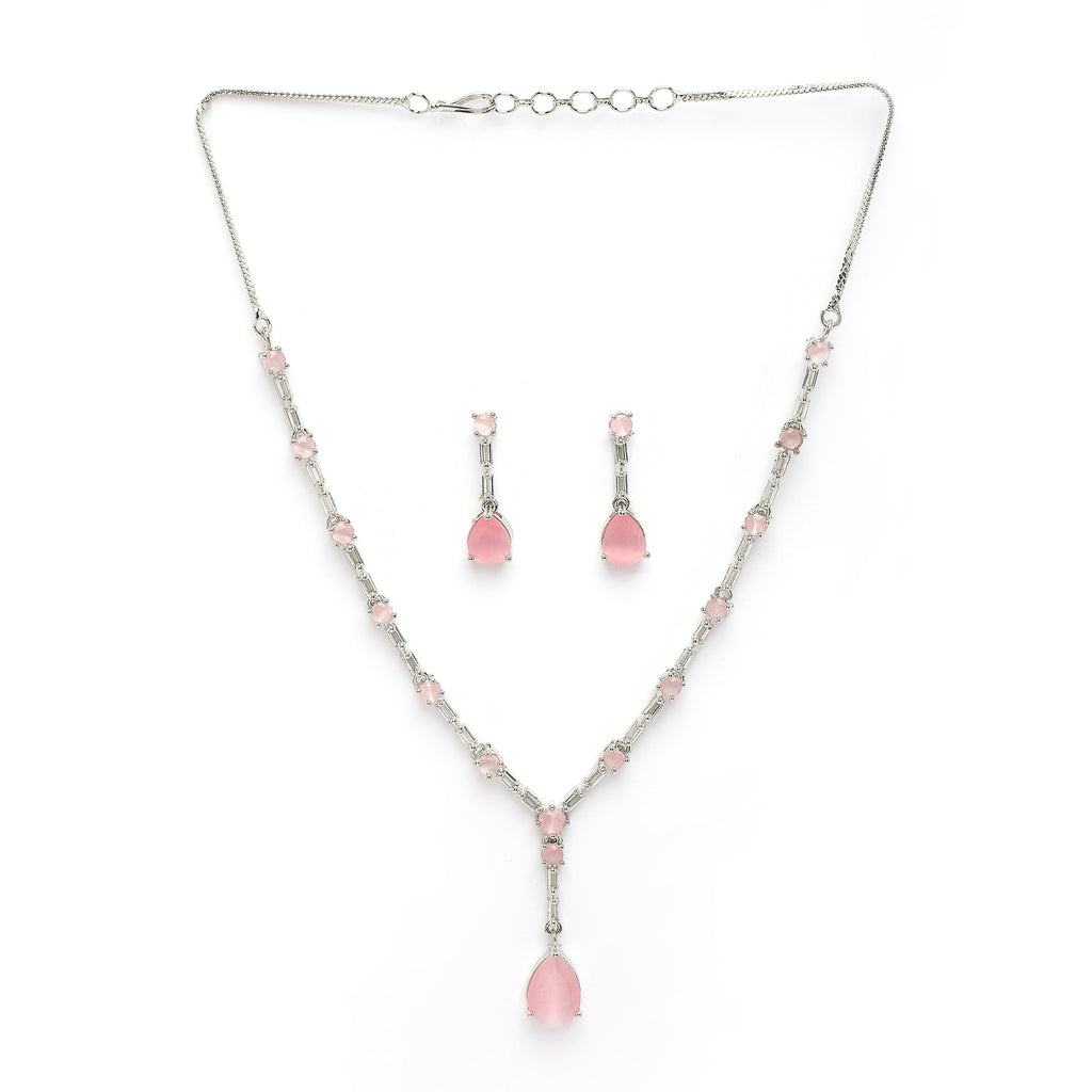 Elegant Design: This rhodium-plated necklace set boasts a sophisticated contemporary design, exuding timeless elegance.