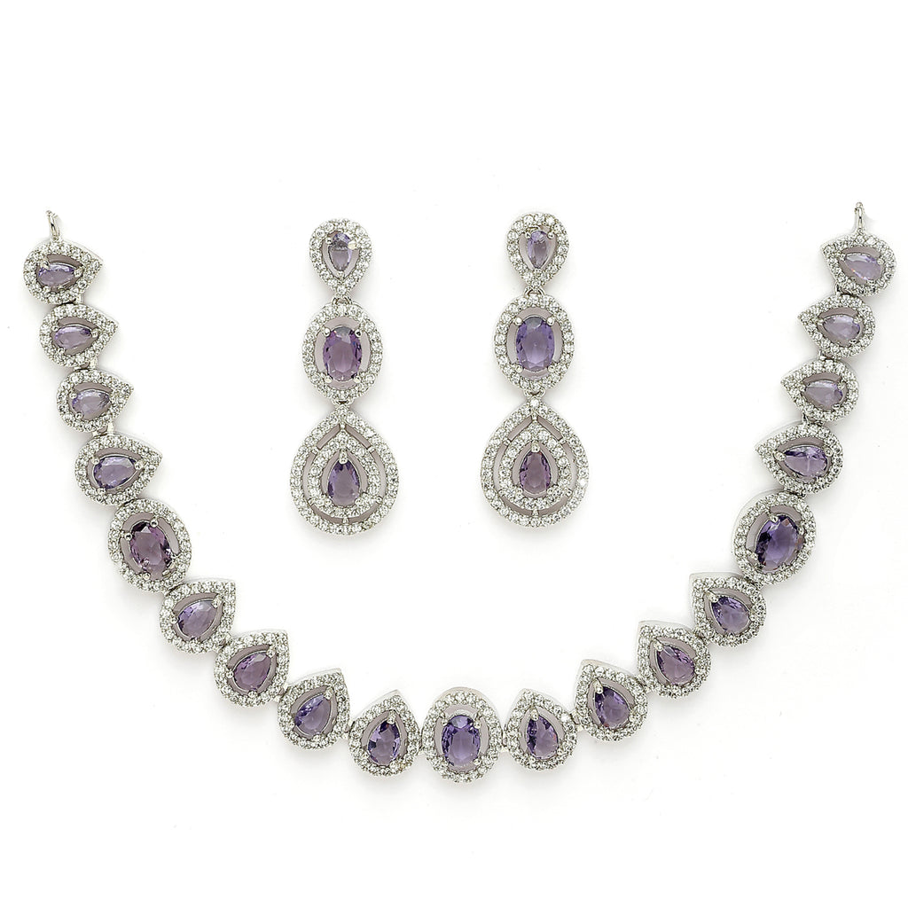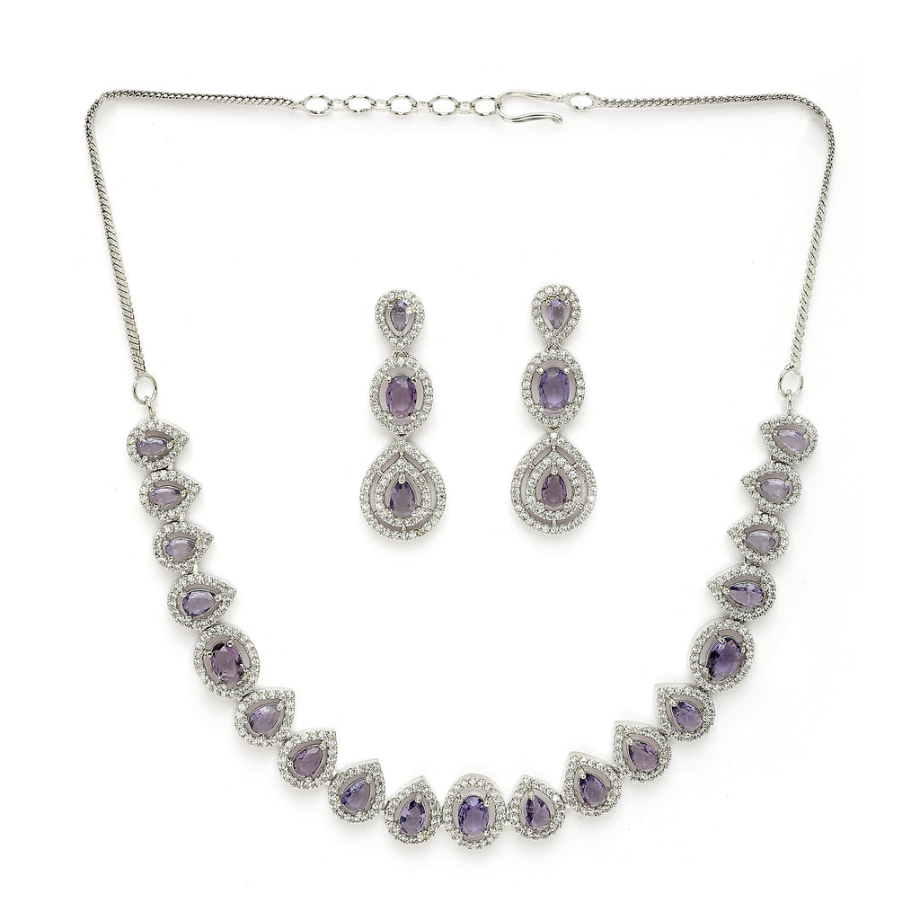 Elegant Design: This rhodium-plated necklace set boasts a sophisticated contemporary design, exuding timeless elegance.