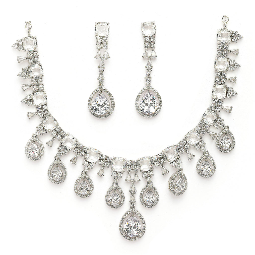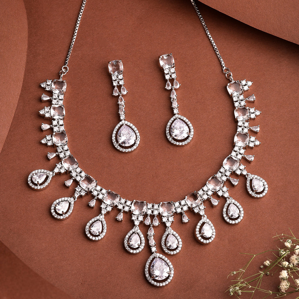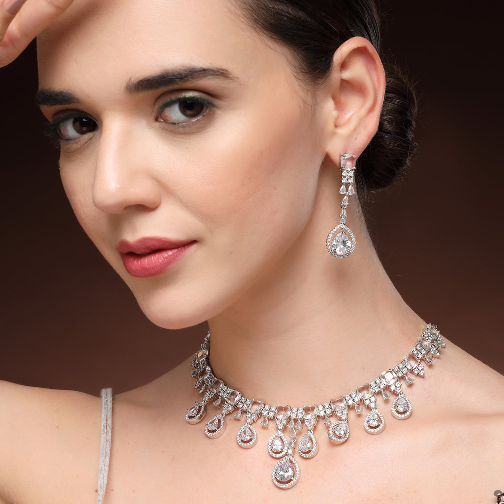 Elegant Design: This rhodium-plated necklace set boasts a sophisticated contemporary design, exuding timeless elegance.