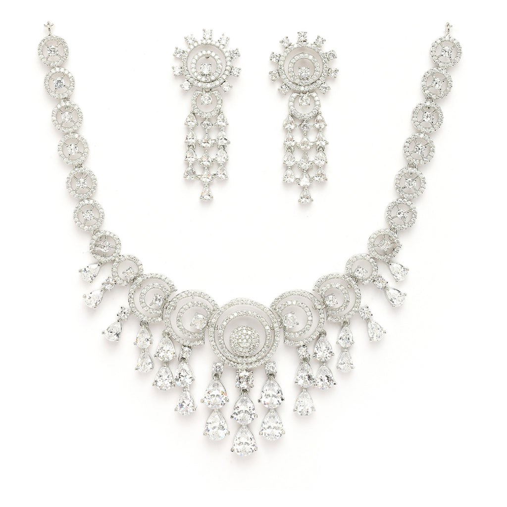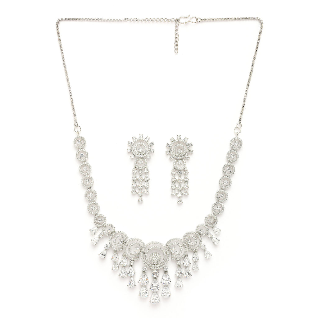 Elegant Design: This rhodium-plated necklace set boasts a sophisticated contemporary design, exuding timeless elegance.