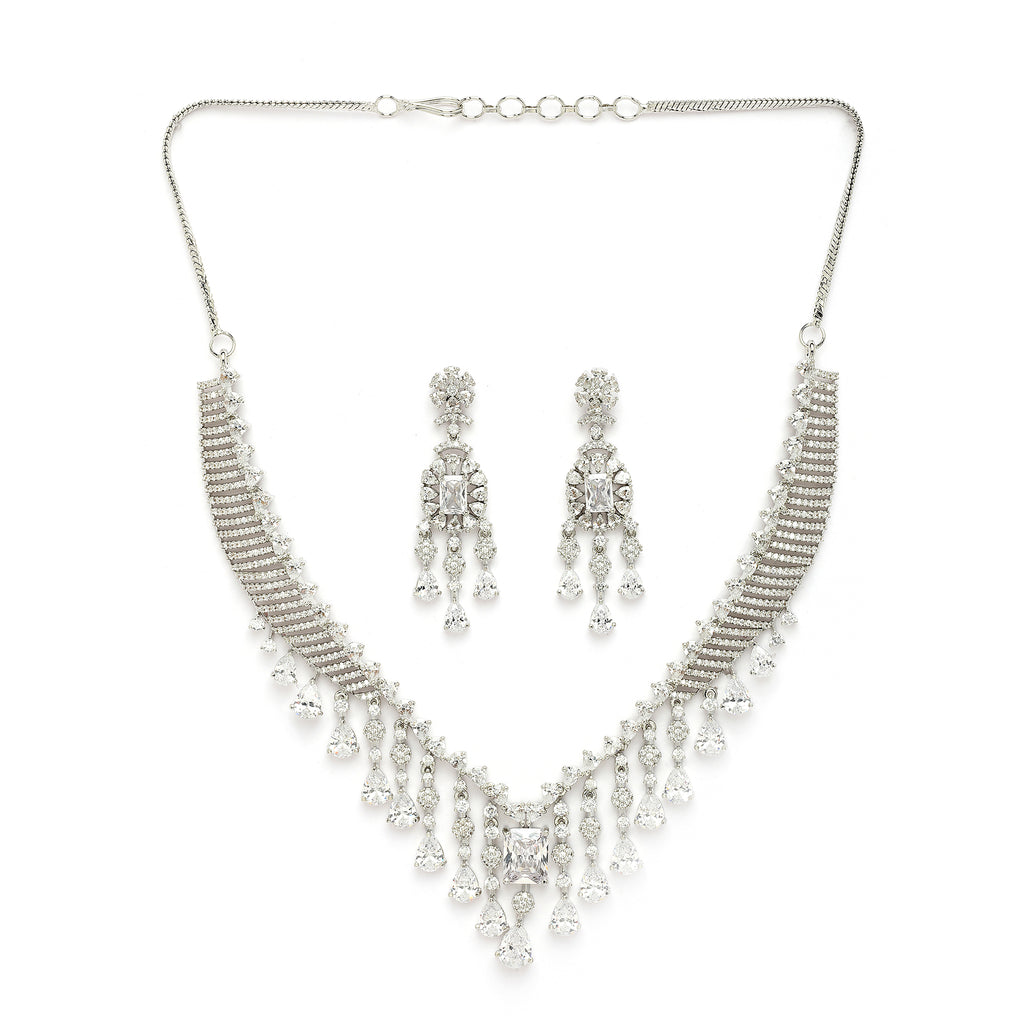 Elegant Design: This rhodium-plated necklace set boasts a sophisticated contemporary design, exuding timeless elegance.