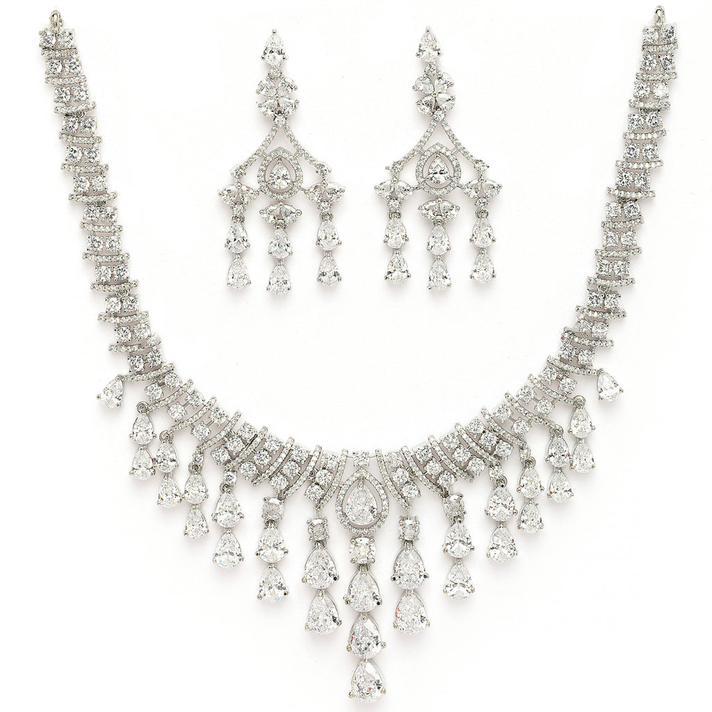 Elegant Design: This rhodium-plated necklace set boasts a sophisticated contemporary design, exuding timeless elegance.