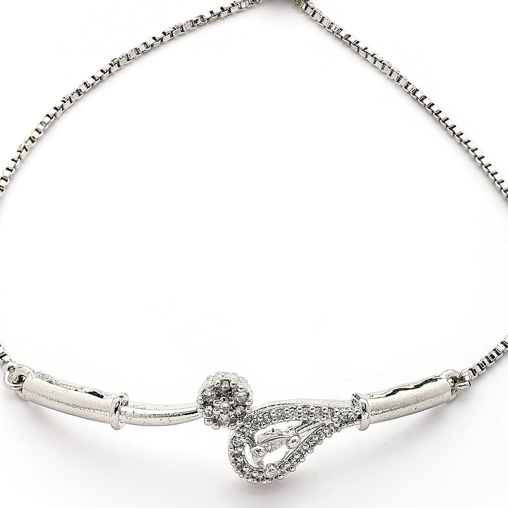 Elegant Design: This rhodium-plated wraparound bracelet showcases sparkling white Cubic Zirconia in a teardrop shape, adding a touch of sophistication to your look.