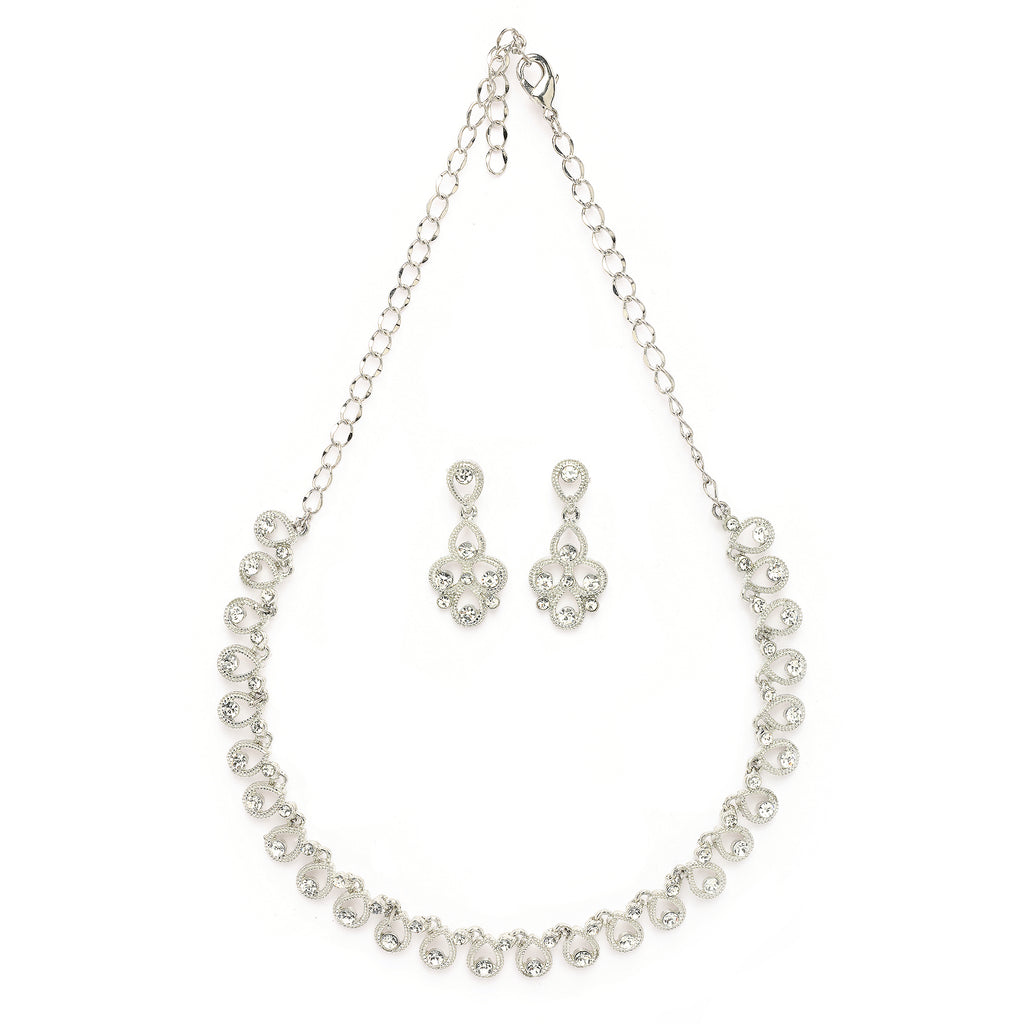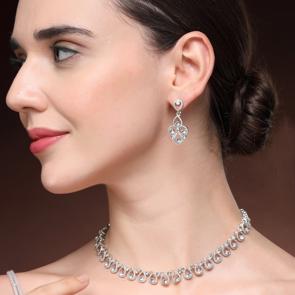 Elegant Design: This rhodium-plated necklace set boasts a sophisticated contemporary design, exuding timeless elegance.