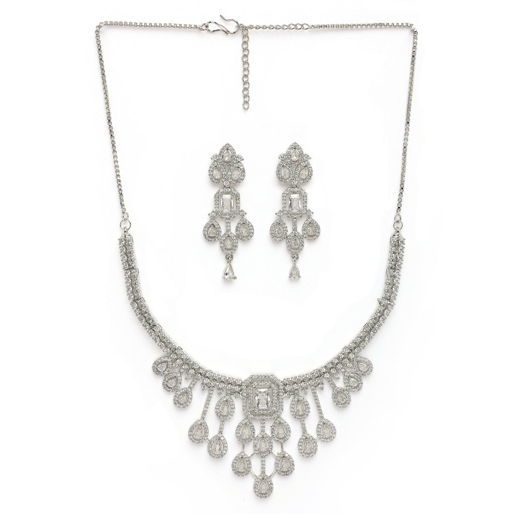 Elegant Design: This rhodium-plated necklace set boasts a sophisticated contemporary design, exuding timeless elegance.