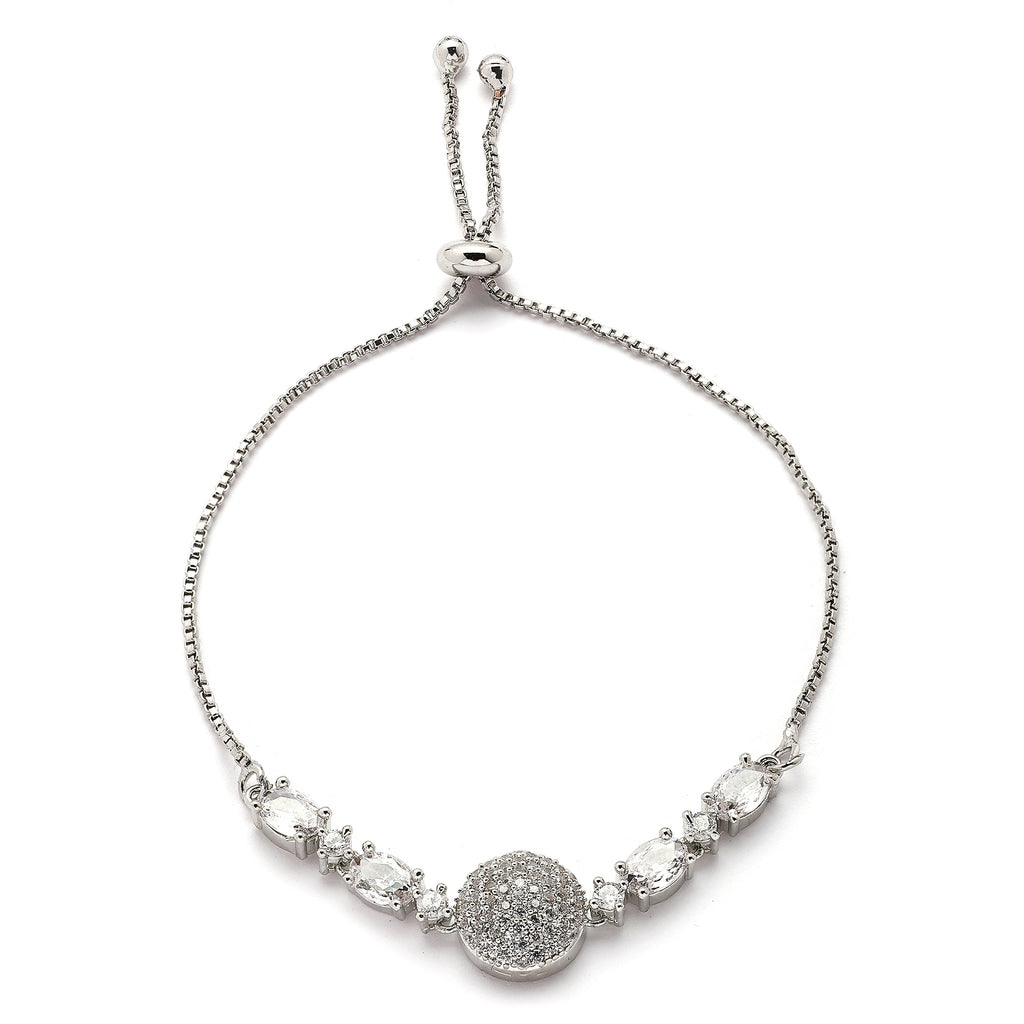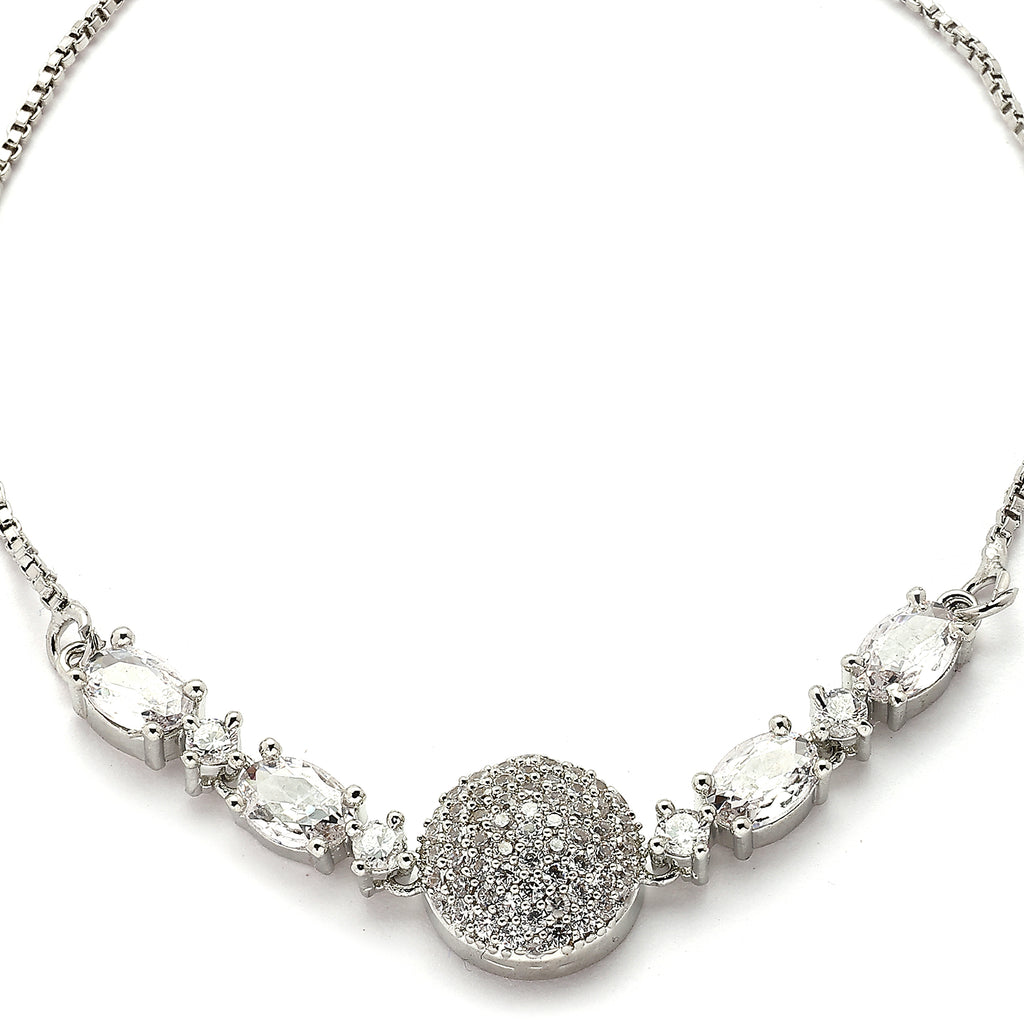 Elegant Drop Shape Design: This rhodium-plated wraparound bracelet showcases sparkling white American diamonds in a geometric shape, adding a touch of sophistication to your look.