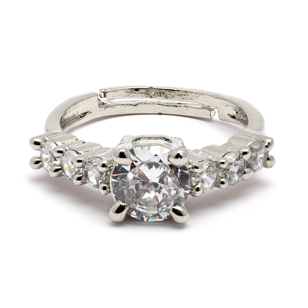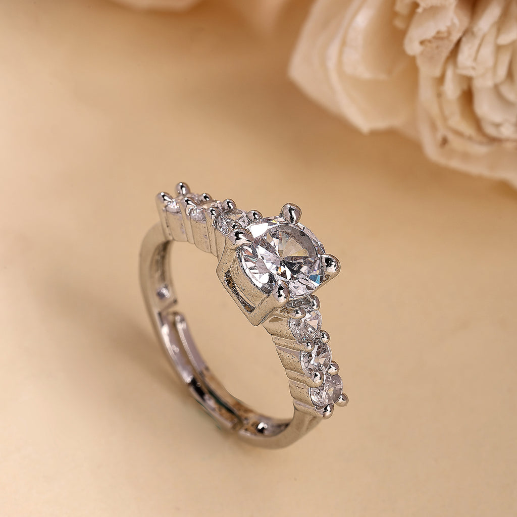 Elegant Design: This Rhodium-plated American Diamond Rings boasts a sophisticated Trendy design, exuding timeless elegance.