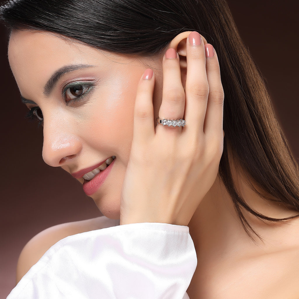 Elegant Design: This Rhodium-plated American Diamond Rings boasts a sophisticated Trendy design, exuding timeless elegance.