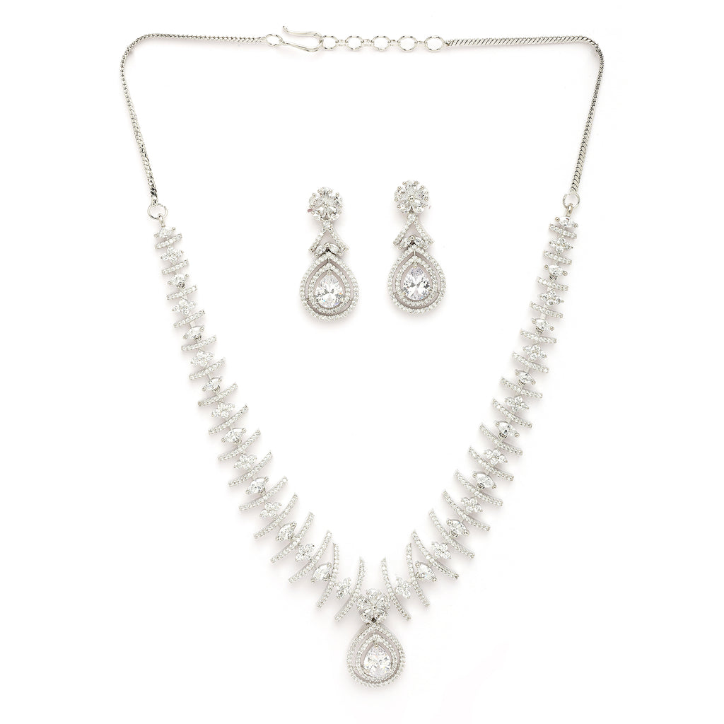 Elegant Design: This rhodium-plated necklace set boasts a sophisticated contemporary design, exuding timeless elegance.
