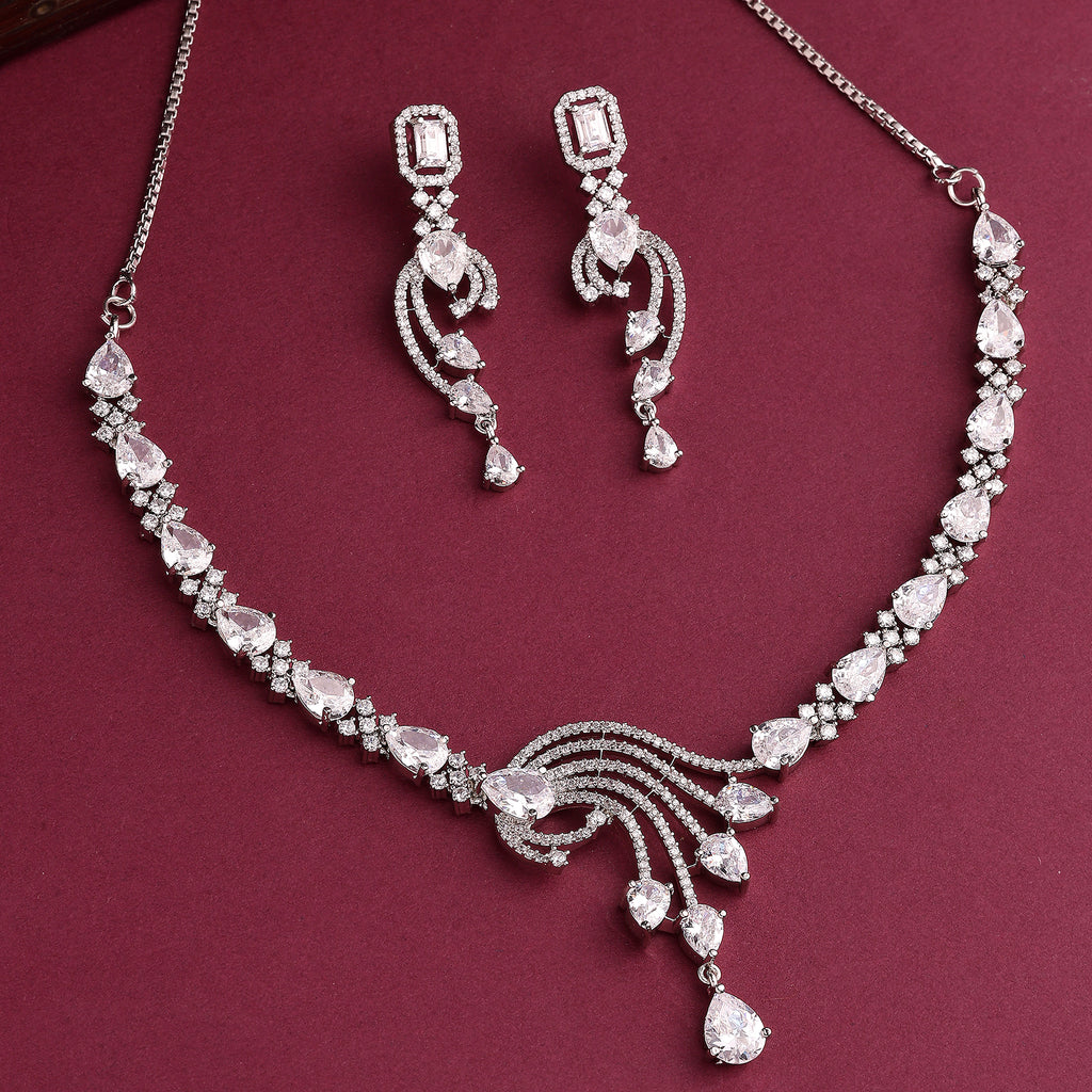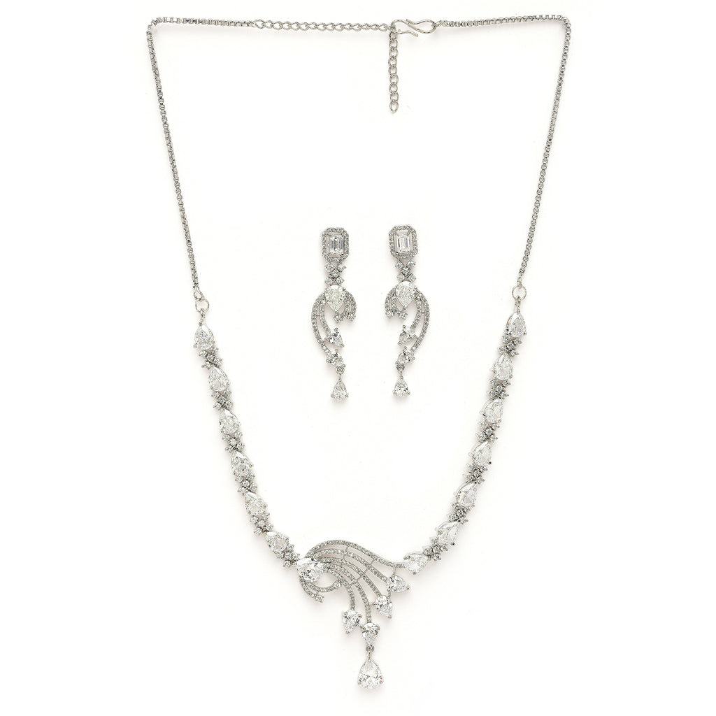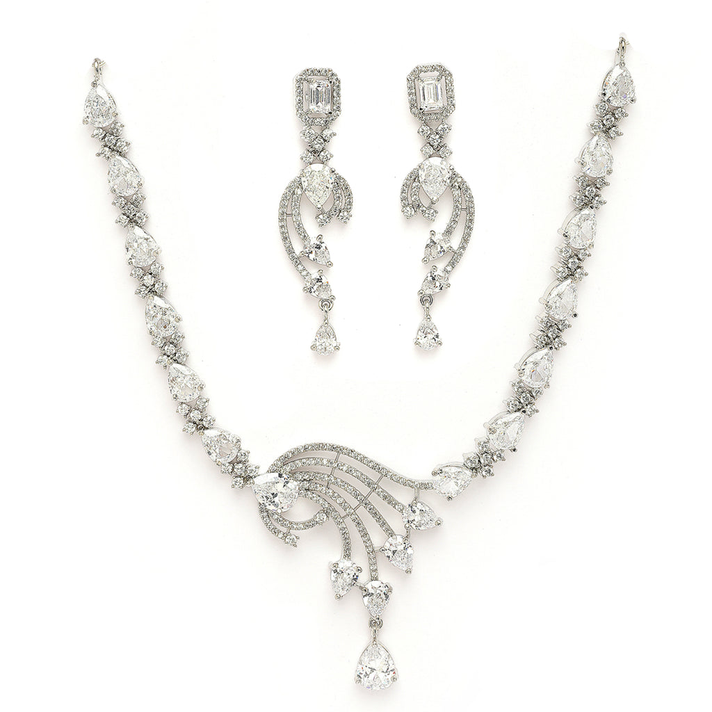 Elegant Design: This rhodium-plated necklace set boasts a sophisticated contemporary design, exuding timeless elegance.