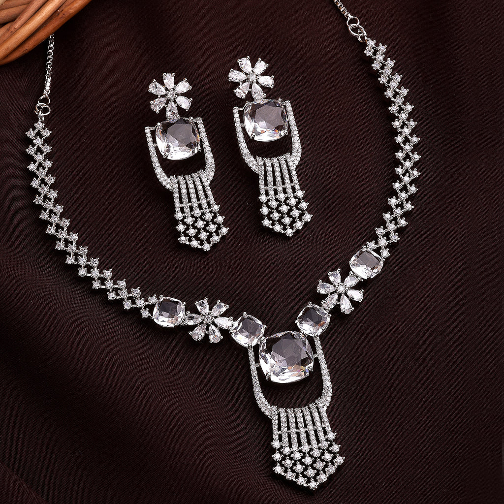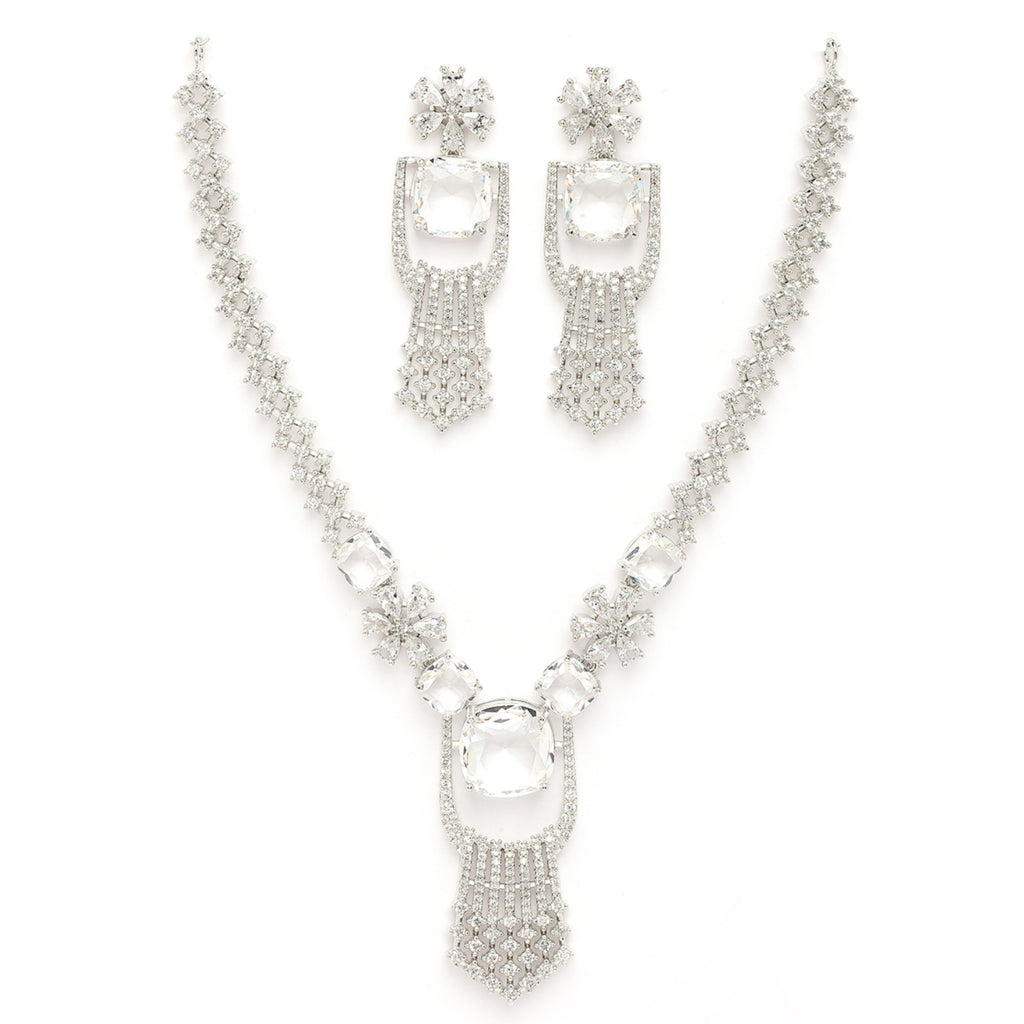 Elegant Design: This rhodium-plated necklace set boasts a sophisticated contemporary design, exuding timeless elegance.