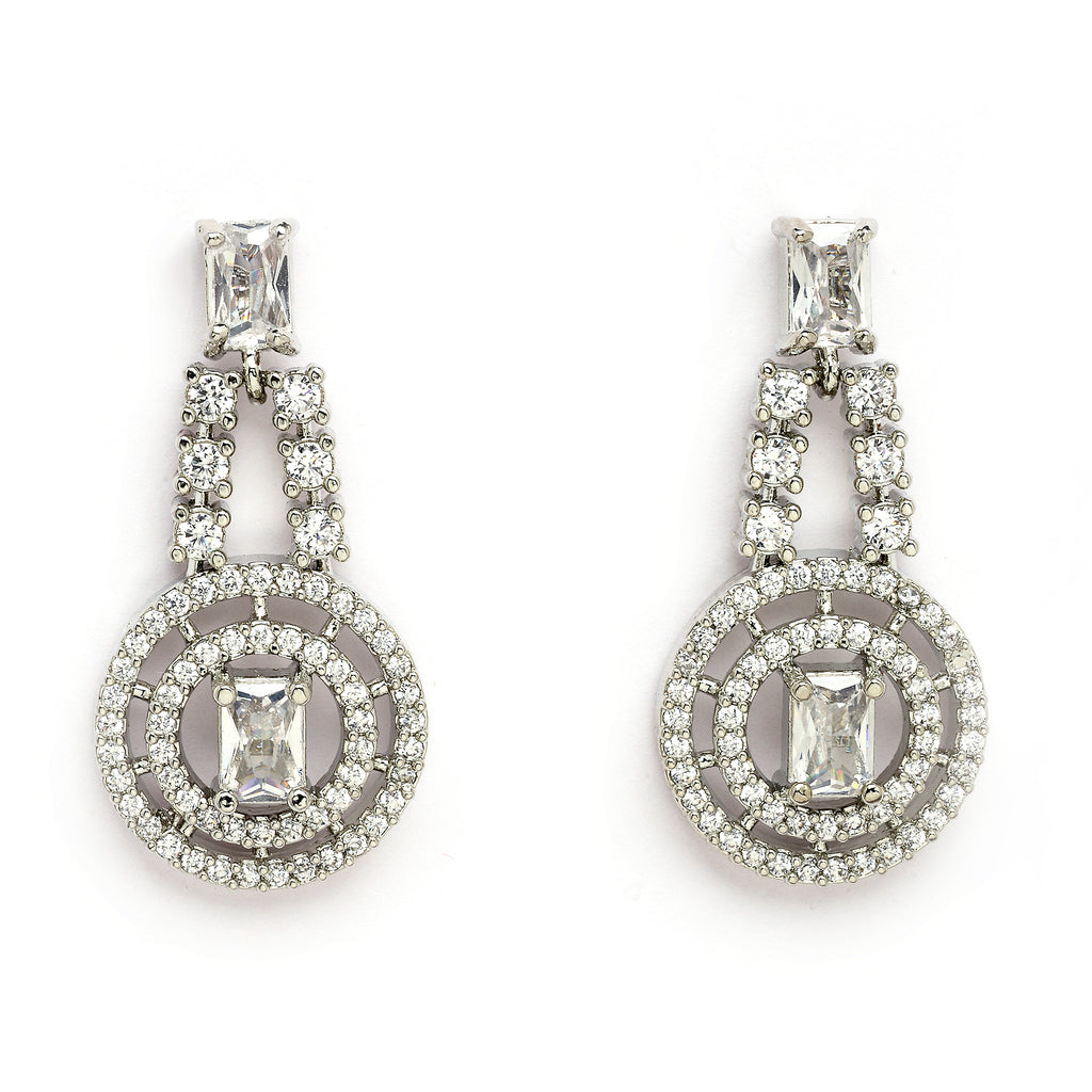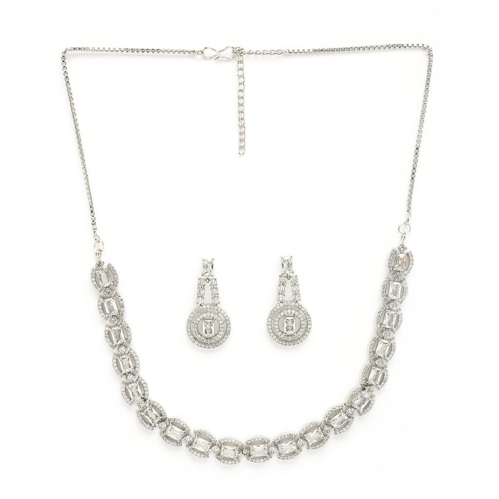 Elegant Design: This rhodium plated necklace set features a delicate circular design with soft white stones, adding a touch of sophistication and femininity to your look.