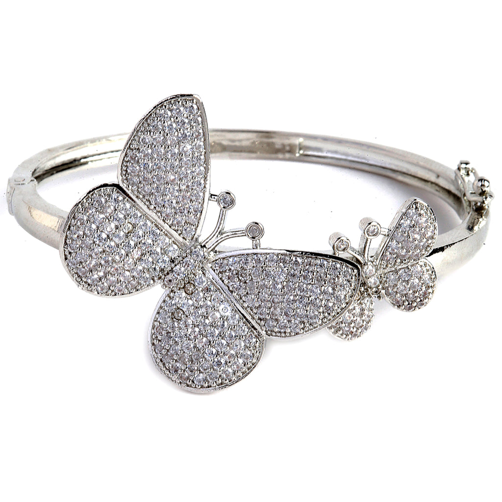 Elegant Butterfly Pattern: This Rhodium plated bracelet features an intricately design, symbolizing grace and femininity, with a shimmering stone-studded finish.