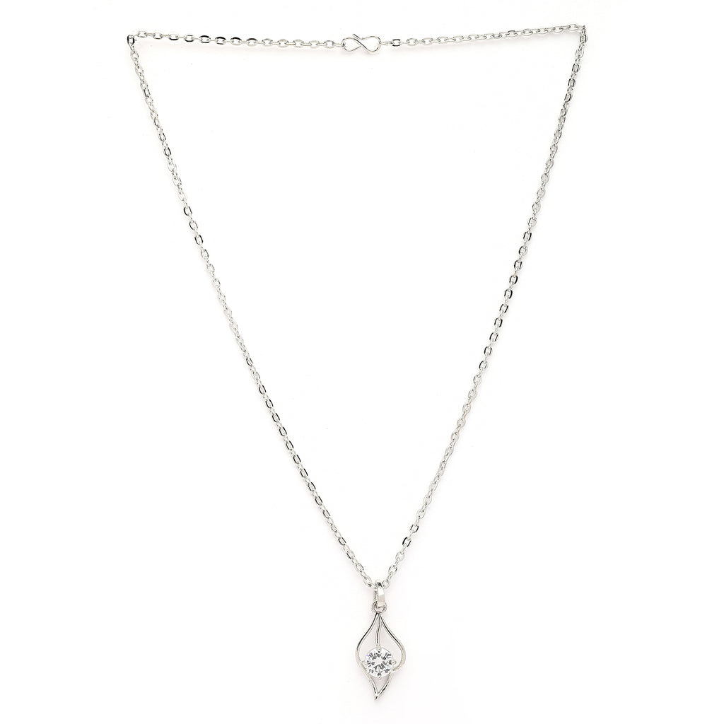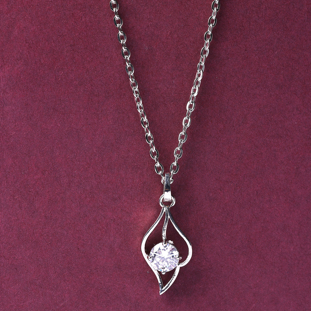 Elegant Design: This rhodium-plated silver toned American Diamond studded Leaf shaped Pendant with chain boasts a sophisticated Trendy design, exuding timeless elegance.