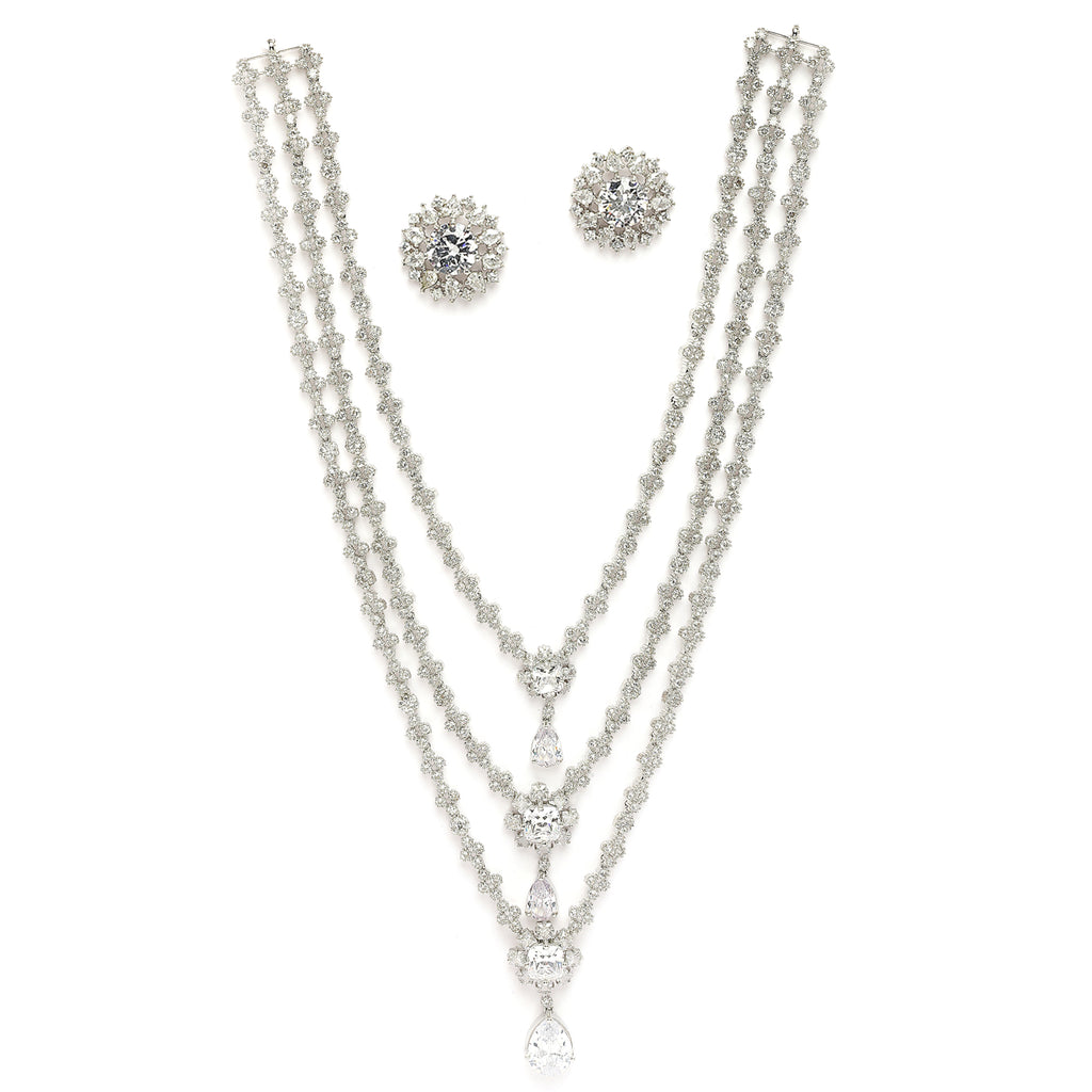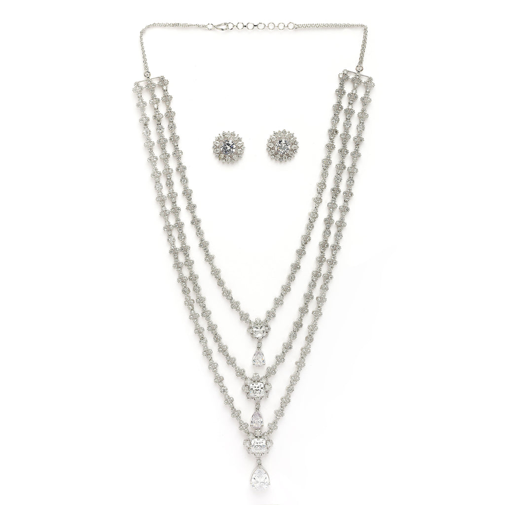 Elegant Design: This rhodium-plated necklace set boasts a sophisticated contemporary design, exuding timeless elegance.
