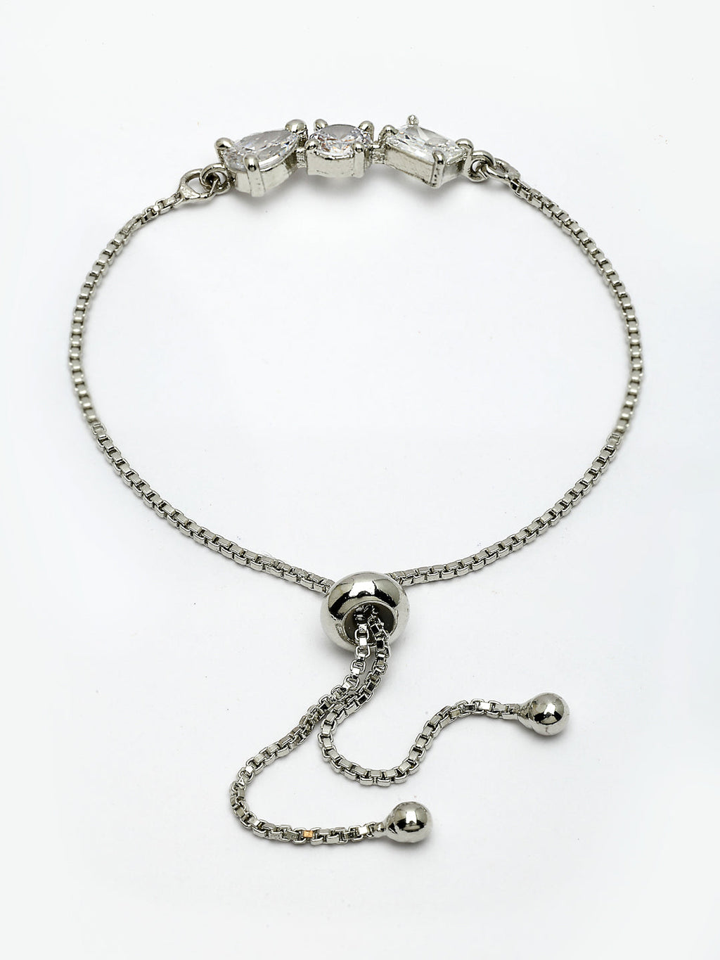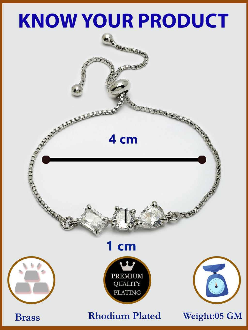 Elegant Design: This rhodium-plated wraparound bracelet features three distinct shapes adorned with dazzling white American diamonds, creating a unique and sophisticated accessory.