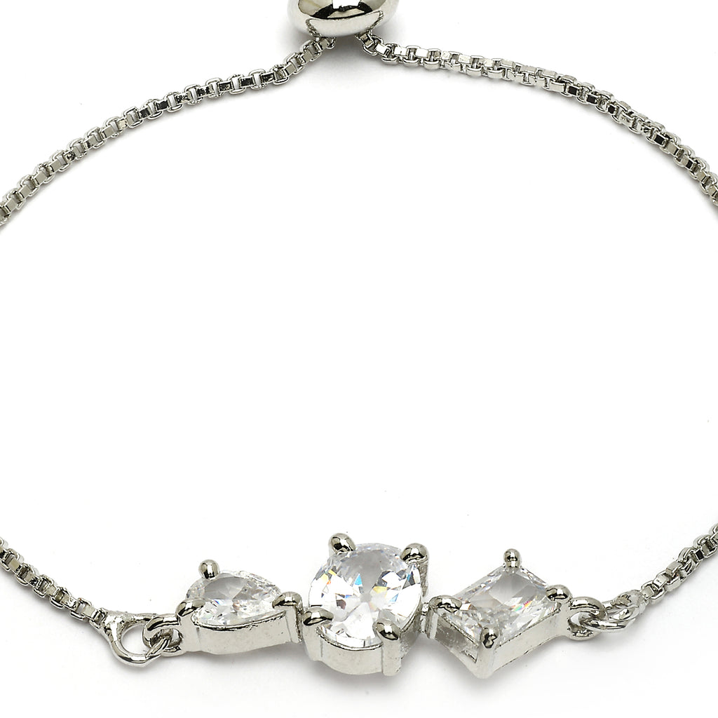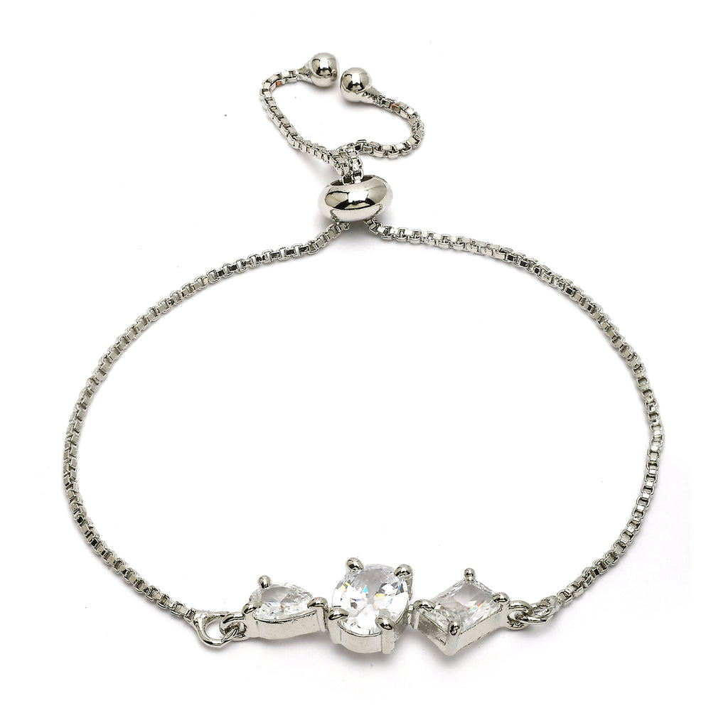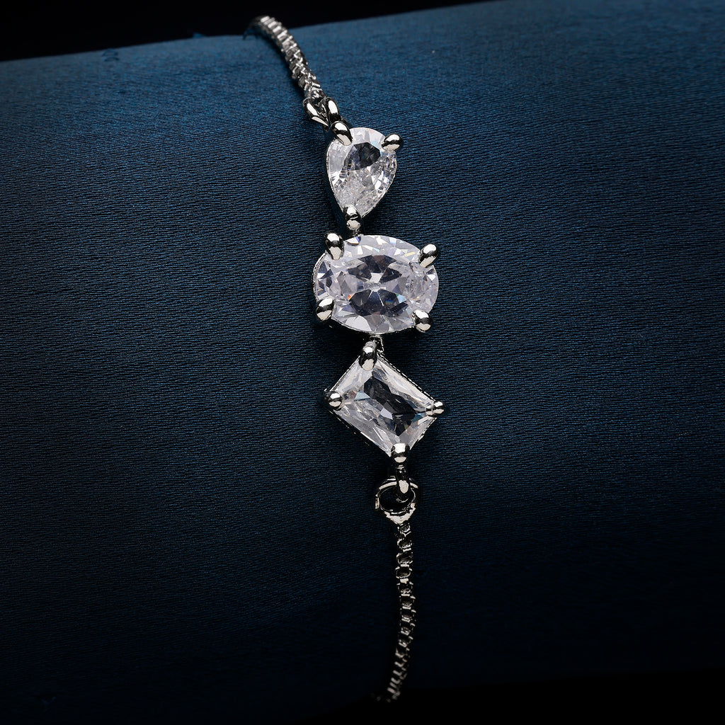 Distinctive Design: This rhodium-plated wraparound bracelet showcases three unique shapes, each beautifully adorned with sparkling white American diamonds, for a truly eye-catching piece.