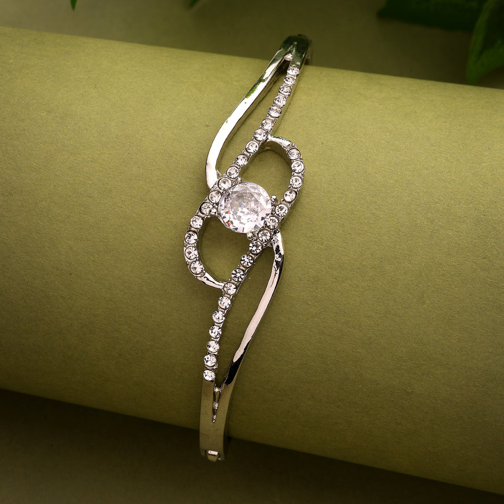 Elegant Design: This rhodium-plated Cuff bracelet showcases sparkling white Cubic Zirconia studded, adding a touch of sophistication to your look.