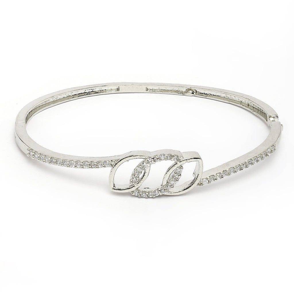 Elegant Design: This rhodium-plated Cuff bracelet showcases sparkling white Cubic Zirconia studded, adding a touch of sophistication to your look.