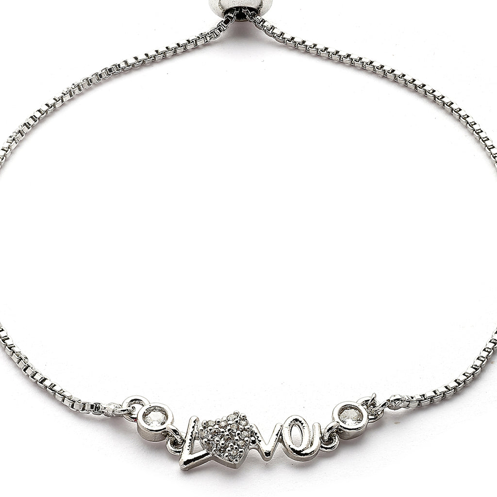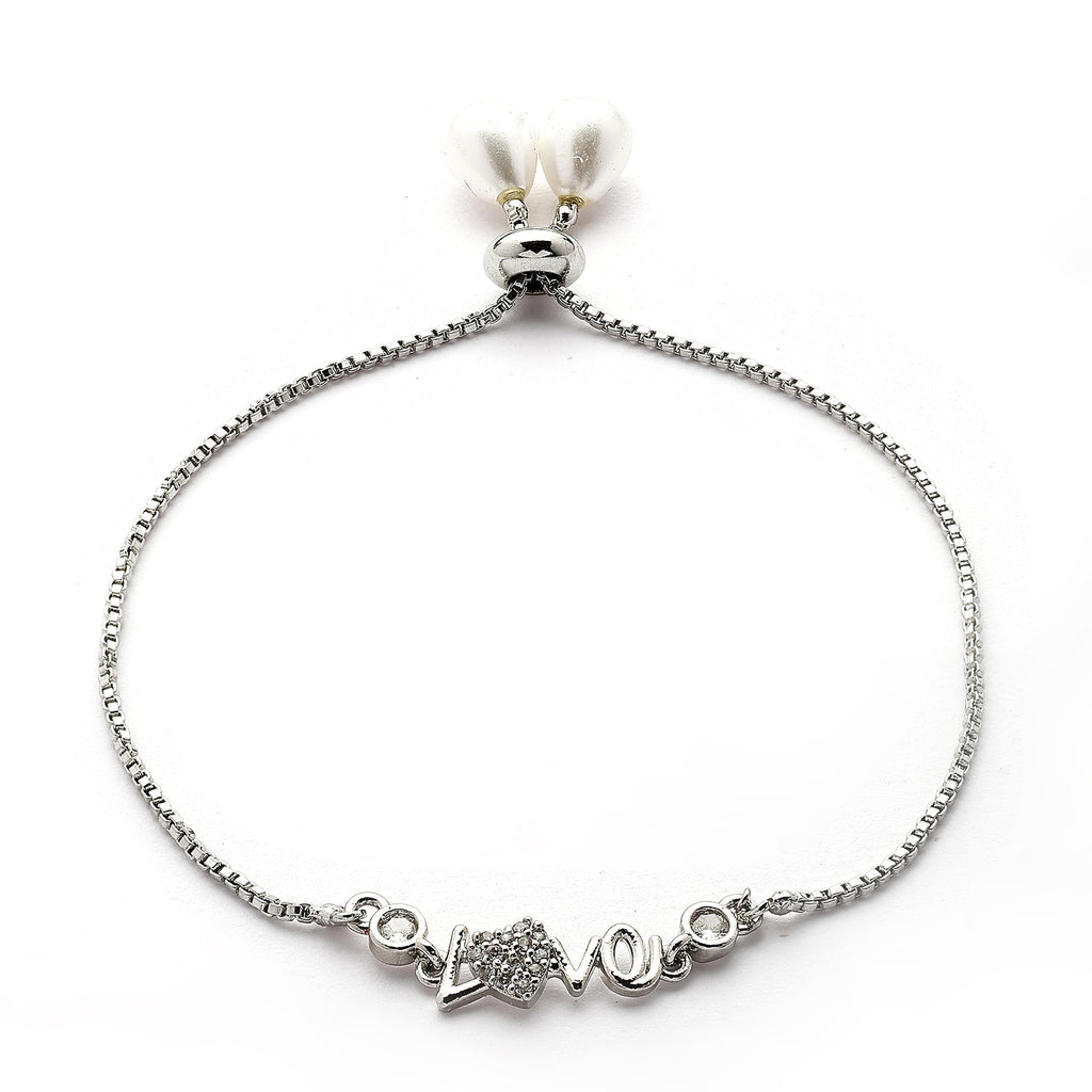 Elegant Design: This rhodium-plated wraparound bracelet showcases sparkling white Cubic Zirconia in a love shape, adding a touch of sophistication to your look.