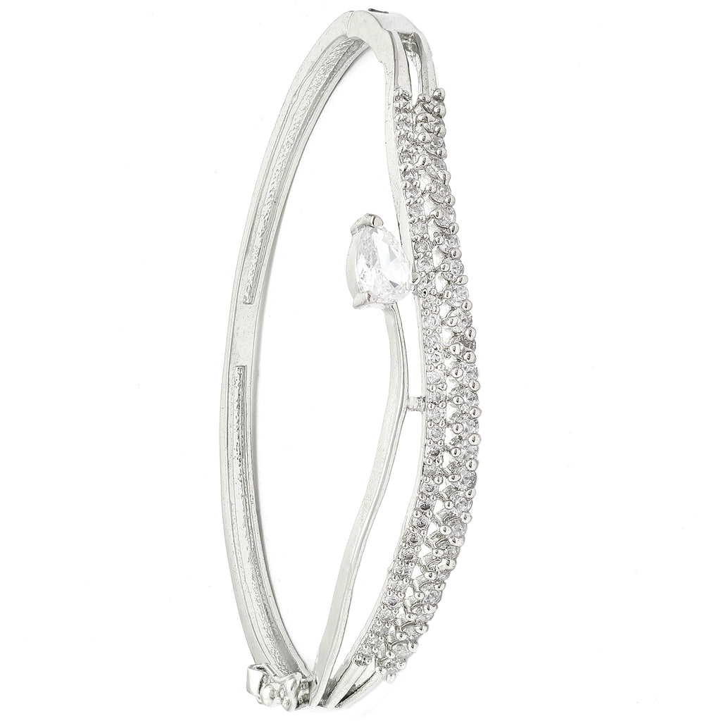 Elegant design – A gracefully curved wave design encrusted with sparkling stones, complemented by a White teardrop gemstone for a touch of luxury.