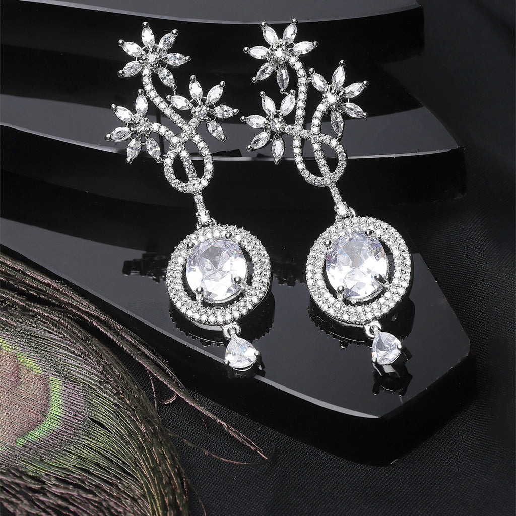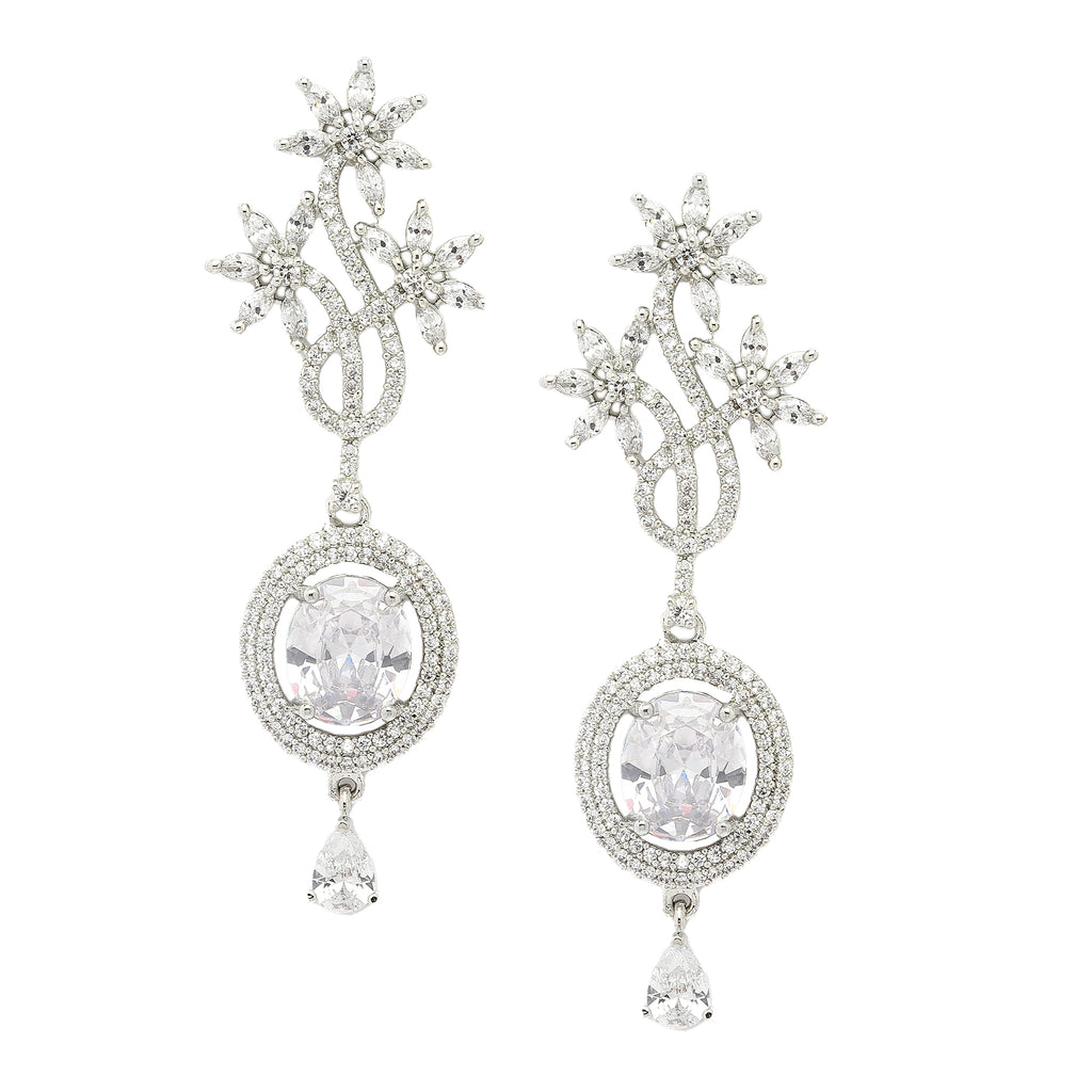 Rhodium-Plated White American Diamond studded Contemporary Drop Earrings