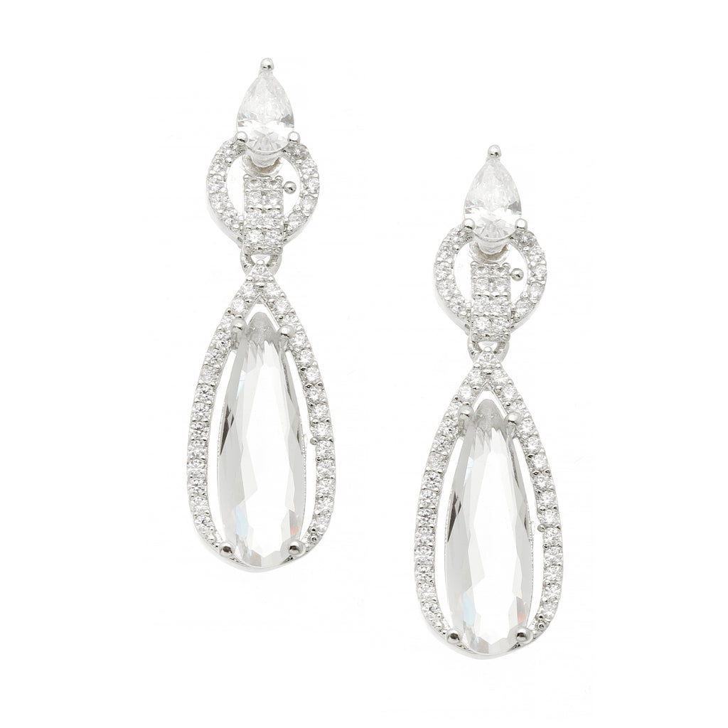 Rhodium-Plated White American Diamond studded Handcrafted Long Teardrop Shaped Drop Earrings