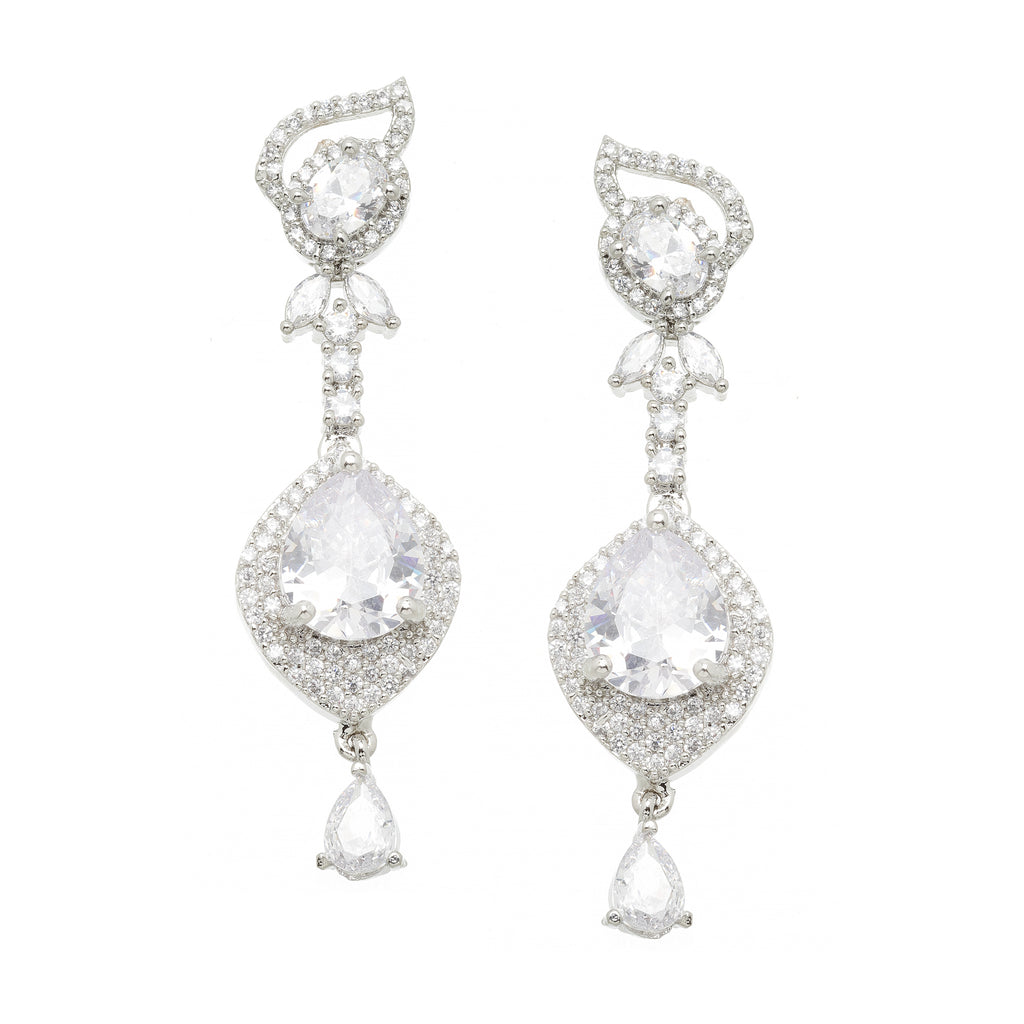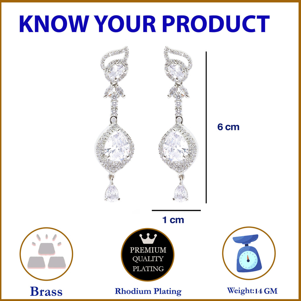 Rhodium-Plated White American Diamond studded Handcrafted Teardrop Drop Earrings