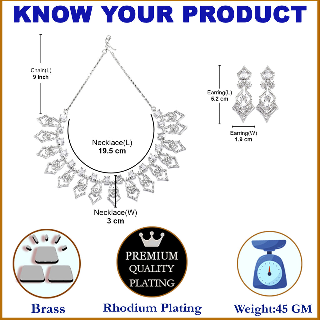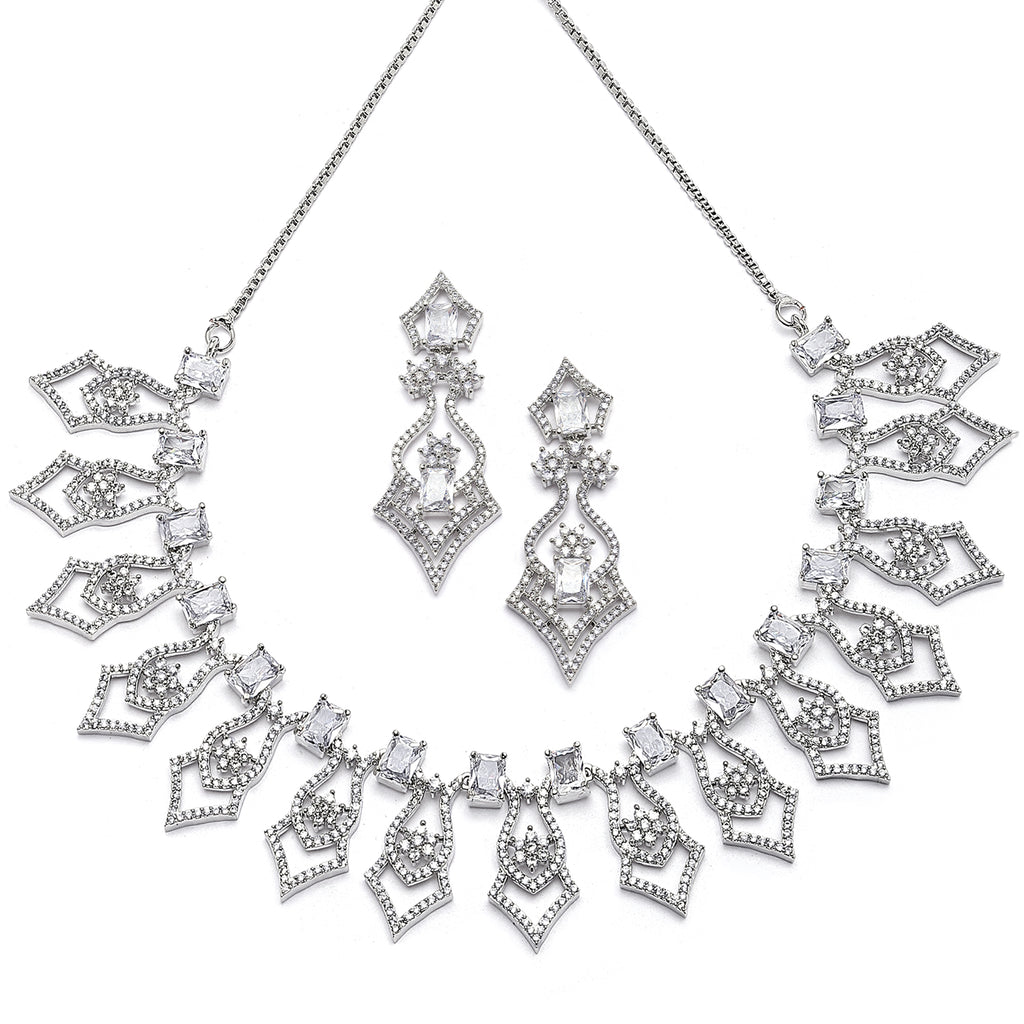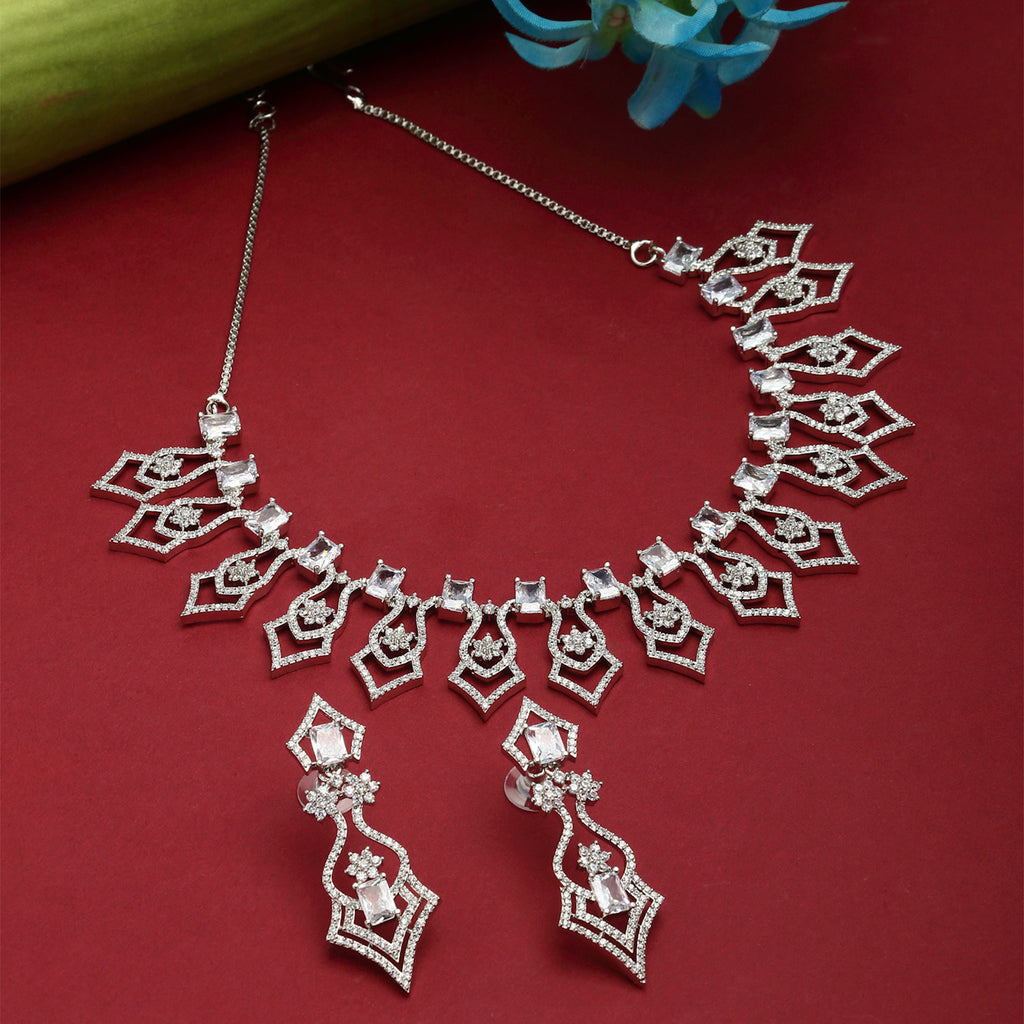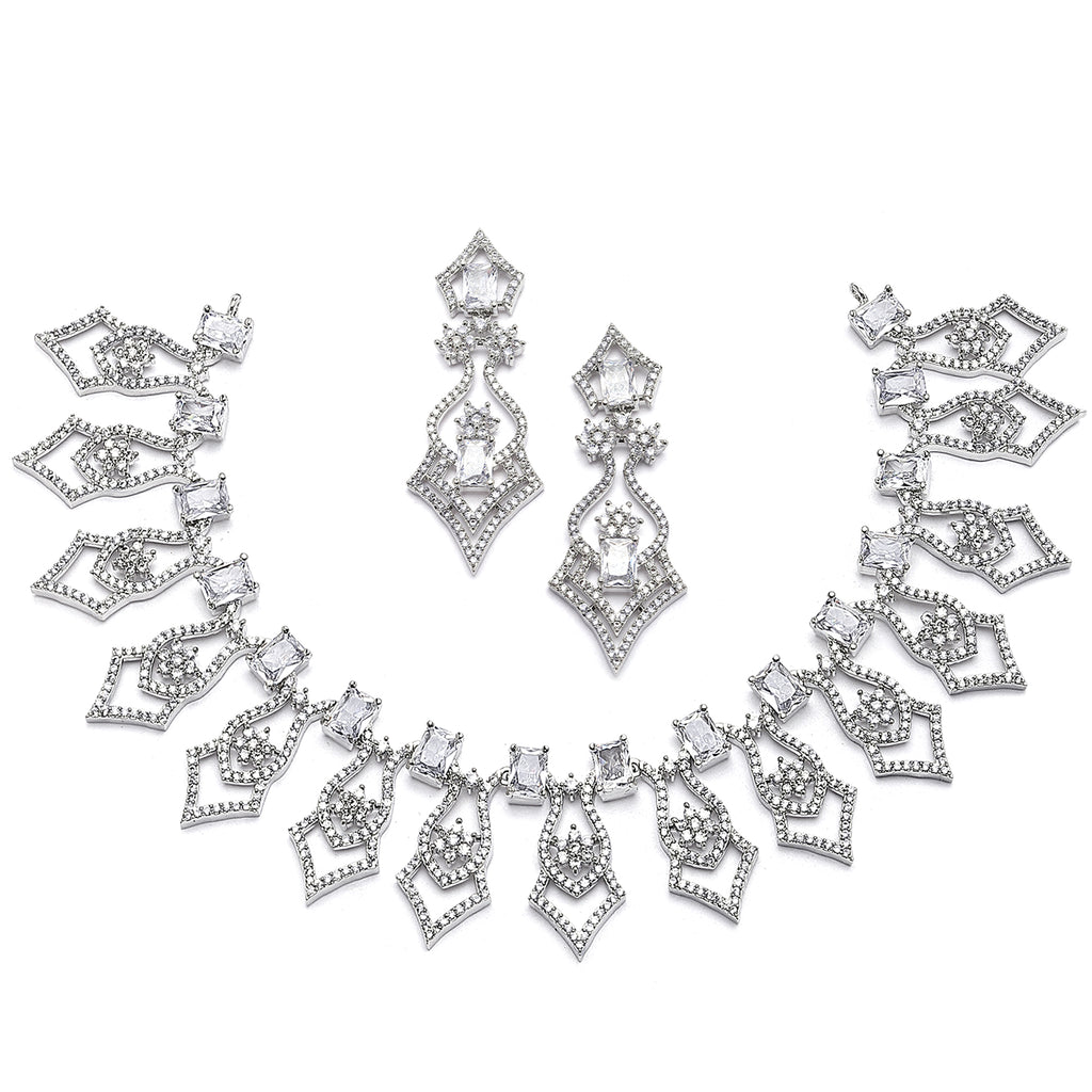 Rhodium-Plated White American Diamond Studded Tempted Necklace & Earrings Jewellery Set